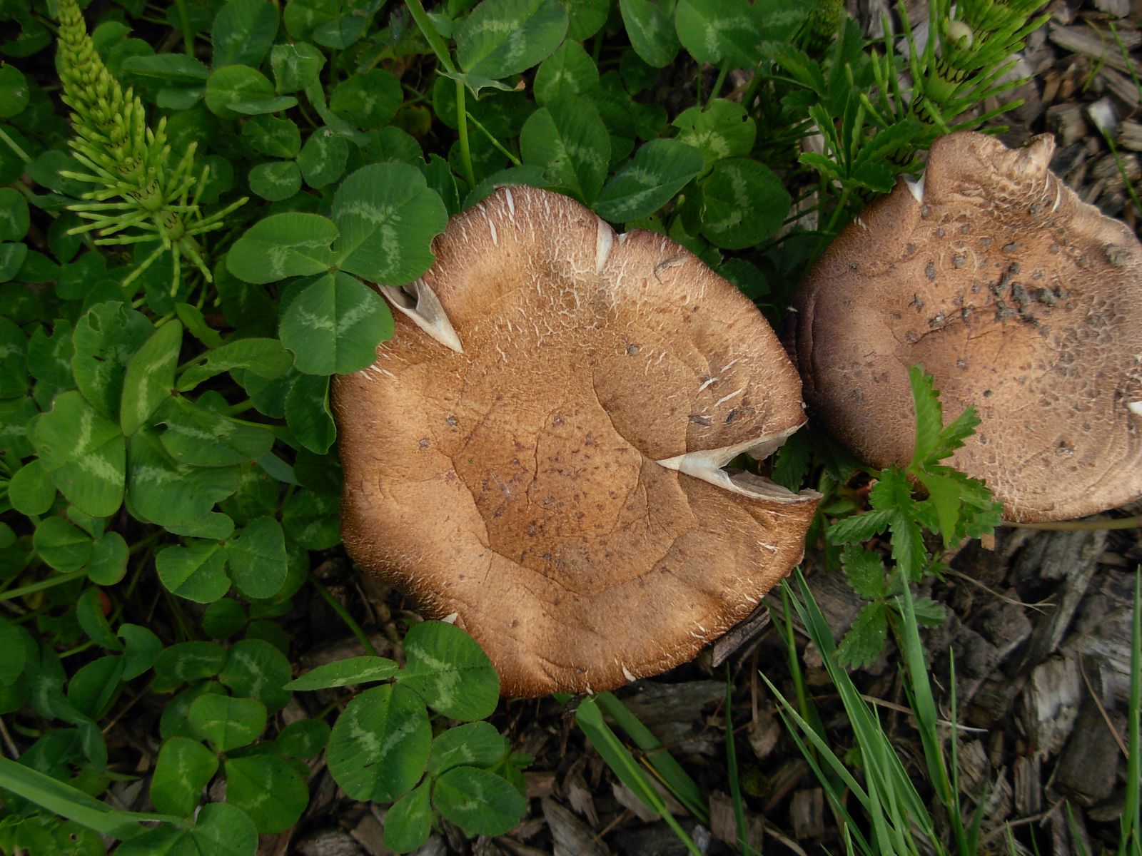 Das sind ziemliche Leichen, aber vermutlich waren das mal Riesenträuschlinge. Man sieht auch, dass dort viel Mulch liegt, das passt besser als der Standort Wiese/Waldrand.