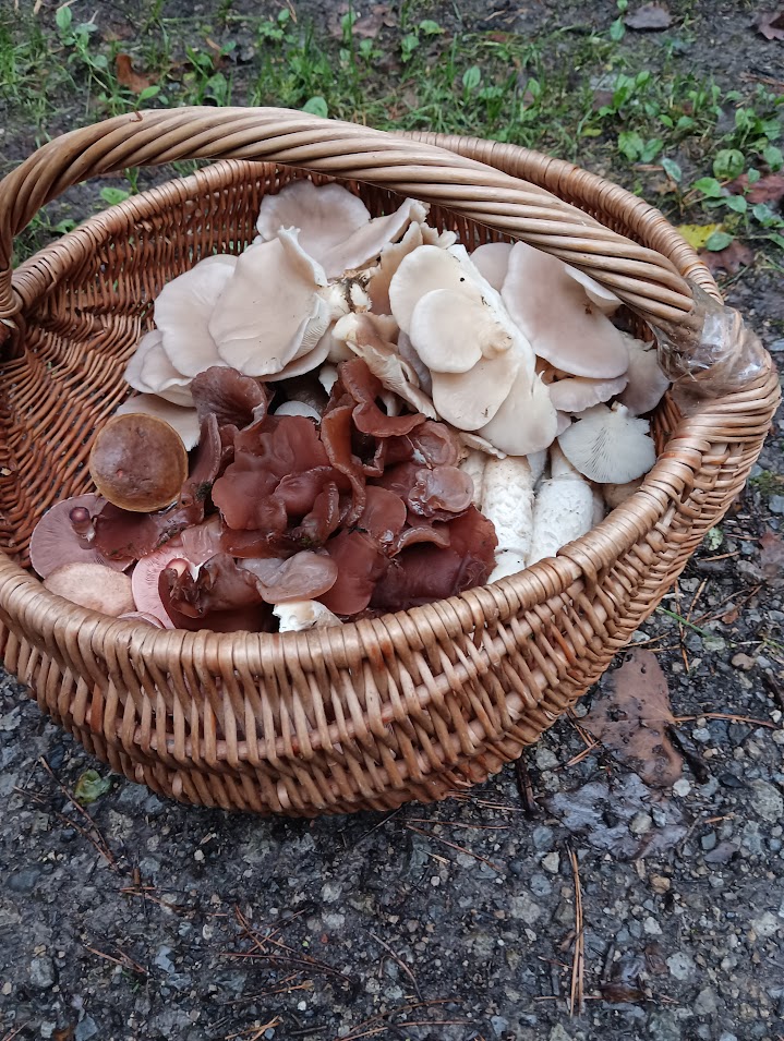 Vielen Dank an alle, die sich die Mühe machen mir auf die Finger zu schauen. Pilze 1.-3. habe ich vor zu essen. Ich dachte ja immer, mein Wald hätte nichts zu bieten. Pustekuchen! Heute musste ich mich zwingen nach 20 Minuten wieder rauszugehen. Eine wirkliche Überraschung für mich. Zum Abschluss gibt es natürlich noch einen Blick in den Korb :) .