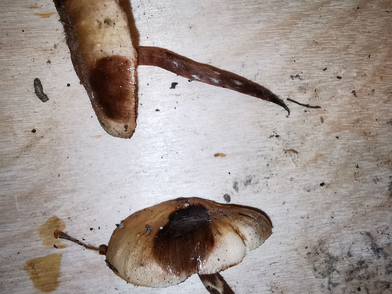 Ich war heute bei uns in den Bergen auf ca. 1800m unterwegs und denke, dass ich Gifthäublinge gefunden habe. Die Pilze wuchsen auf toten Wurzeln. Nachdem ich die Lamellen etwas zerdrückt habe, konnte ich einen leichten mehlartigen Geruch wahrnehmen. Auf dem Stiel erkennt man silbrige Fasern, die Oberseite der Hüte scheinen etwas mitgenommen (vielleicht wegen Kälte) zu sein. Also nach meinem Eindruck sprechen die Merkmale für den Gifthäubling, allerdings habe ich einen Test mit KOH gemacht, was laut Literatur eine rötliche Verfärbung ergeben sollte, allerdings sehe ich diese bei mir eigentlich nicht (siehe Fotos 1j & 1k). Woran könnte das liegen? Sind die Pilze vielleicht kältegeschädigt und deshalb reagiert das mit KOH nicht mehr richtig?