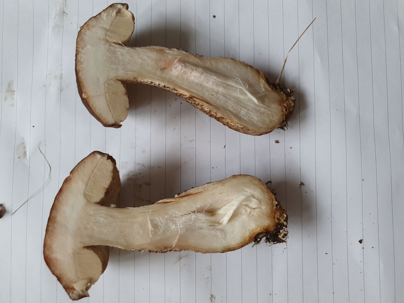 Vermutung von mir wäre Birkenpilz (der helle) und schwärzlicher Birkenpilz (der dunklere).