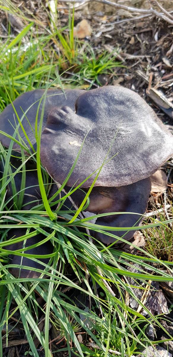 Er ist relativ fest und riecht richtig gut. Der Hut tief Braun, schon fast Schwarz. Die Lamellen sind gräulich. Gefunden habe ich den Pilz auf einer gerodeten Kiefern und Fichtenfläche. Diese wurde letztes Jahr im Frühjahr abgeholzt und geschreddert und diese Jahr im Frühjahr mit neuen Fichten und Tannensetzlingen aufgeforstet. Nicht zu übersehen, die riesigen Flächen von falschen Pfifferlingen die dort jetzt wachsen. Die wachsen dieses Jahr wie verrückt.
