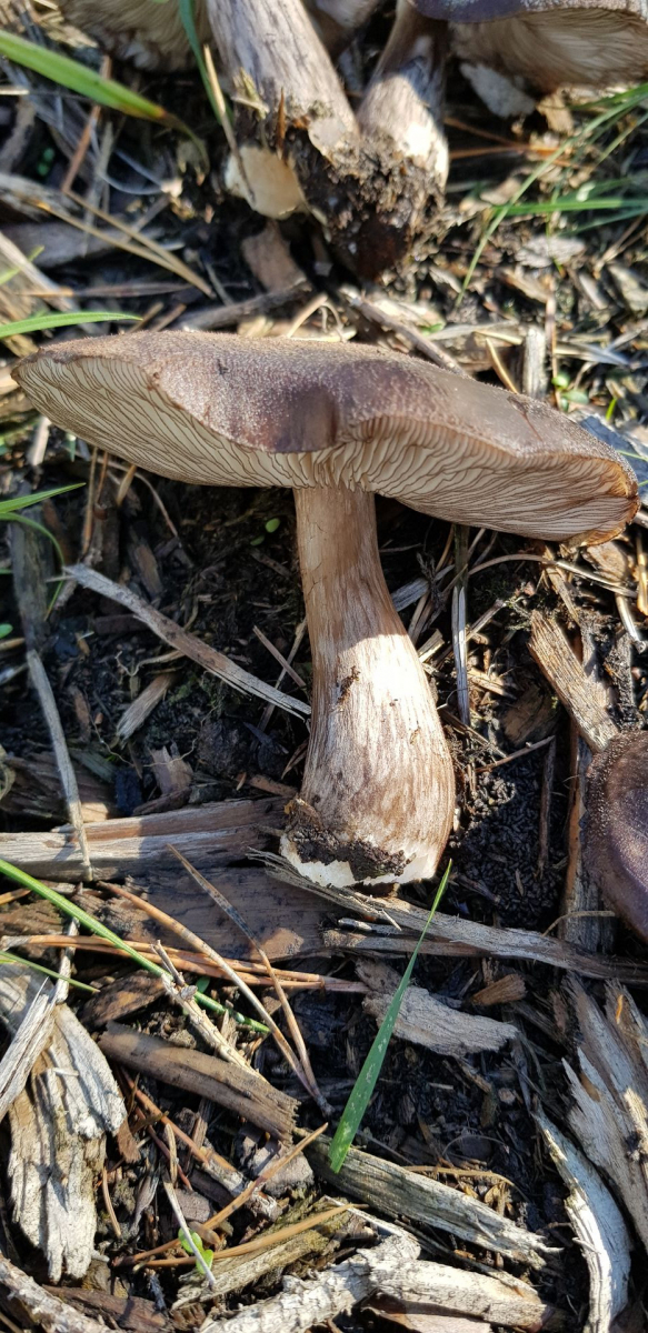 wenn es ein Dachpilz ist, müssten auch die Lamellen frei sein. Auch das sehe ich nicht. Insgesamt ist er mir für einen Dachpilz auch etwas zu kräftig. Vom Instinkt her sehe ich erstmal einen Weichritterling.