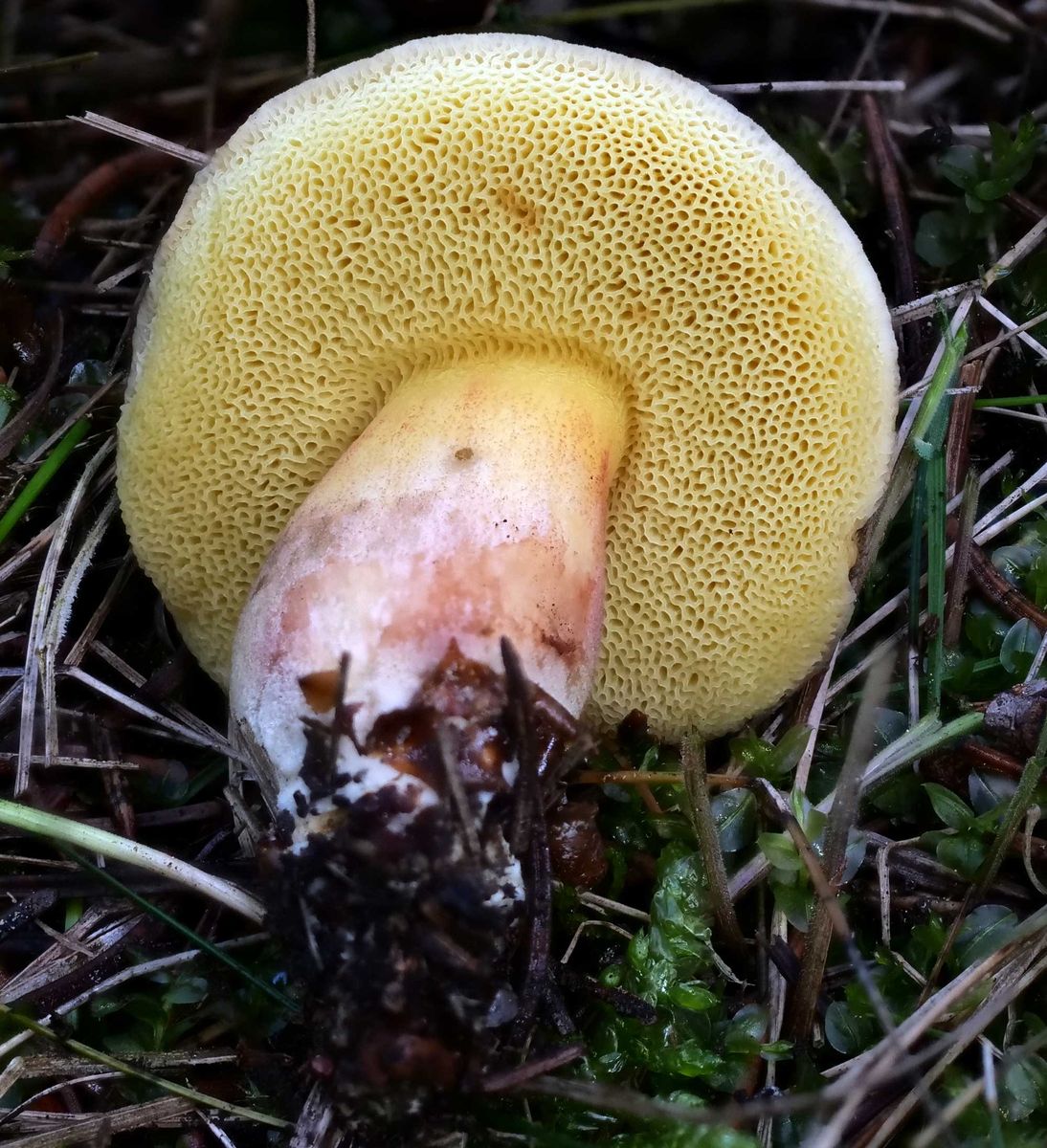 Gestern fand ich in einem Park mit Laub- und einigen Nadelbäumen einen Filzröhrling(?).