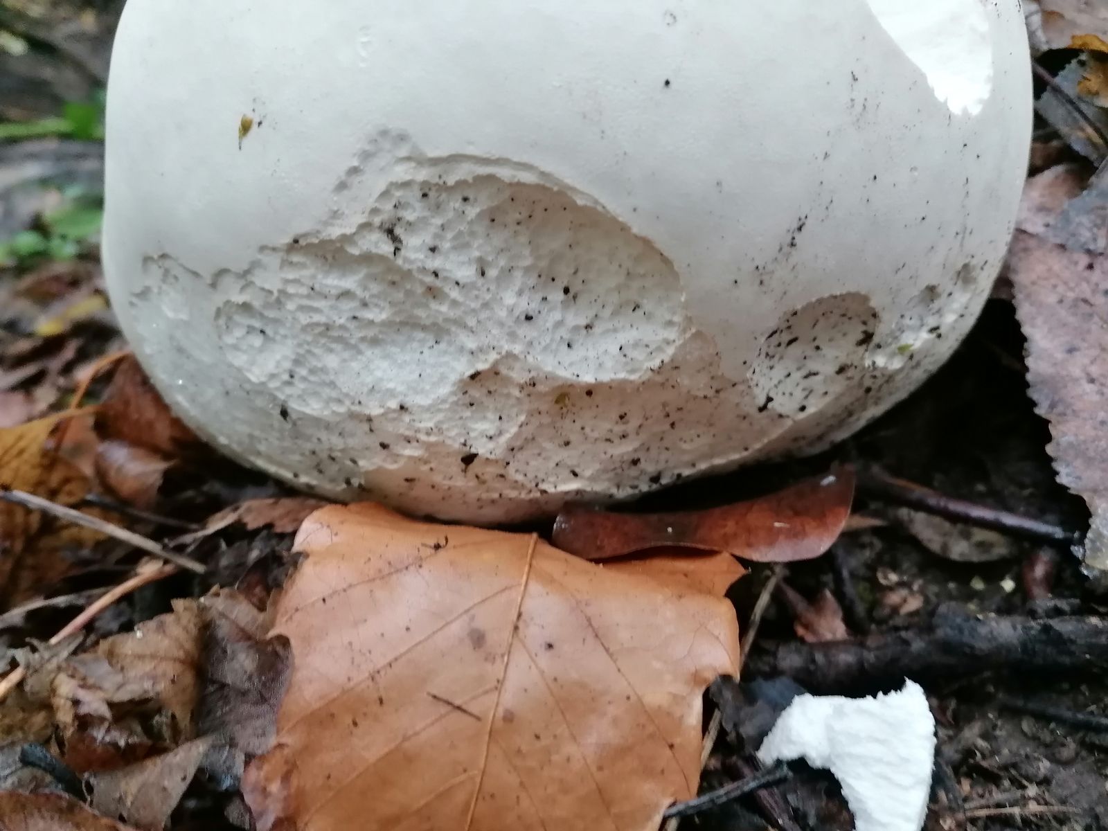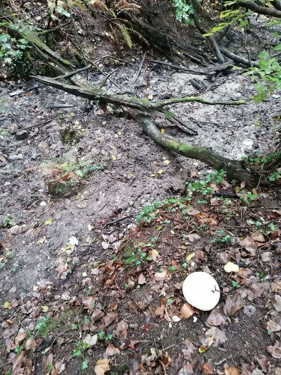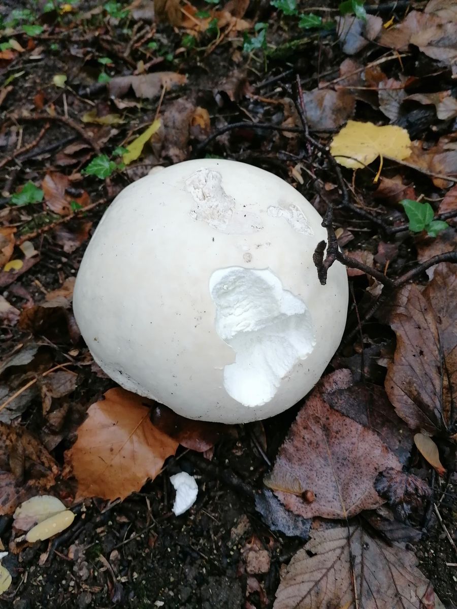 Habe einen sehr großen weißen Pilz gefunden. Meine Vermutung ist, dass es sich um einen Riesenbovist handelt. Allerdings wundert mich ein wenig der Standort.