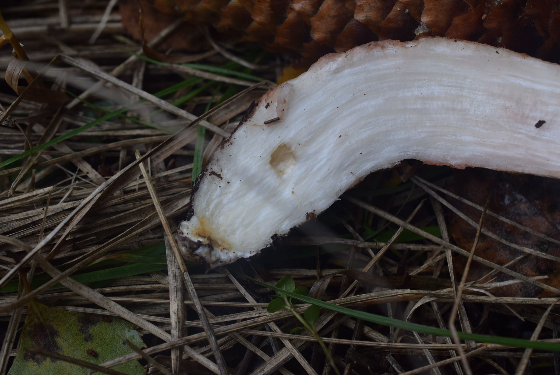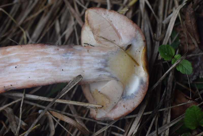 Leccinum sp. - Fleisch nach schnitt weiß , dann nach 5 Minuten schwach rötet und nach über 10 Minuten mehr rötet und dazu blauend .