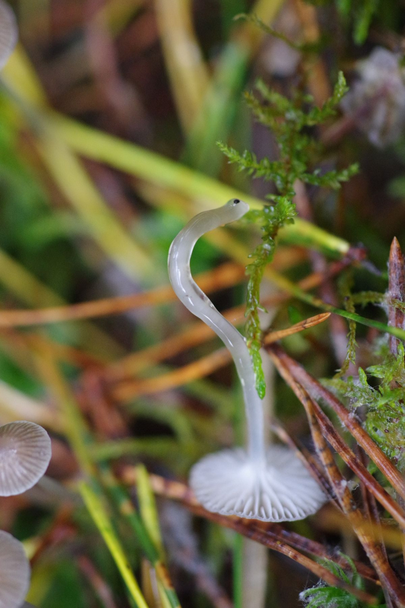 Kurz daneben dann dieser kleine (bis 20 mm) Pilz mit auffallend schleimigen Stielen. Könnte sein, dass der sich um alte Fichtenzapfen gruppiert. Mein Arbeitstitel lautet Roridomyces roridusArbeitstitel glutinipes :D