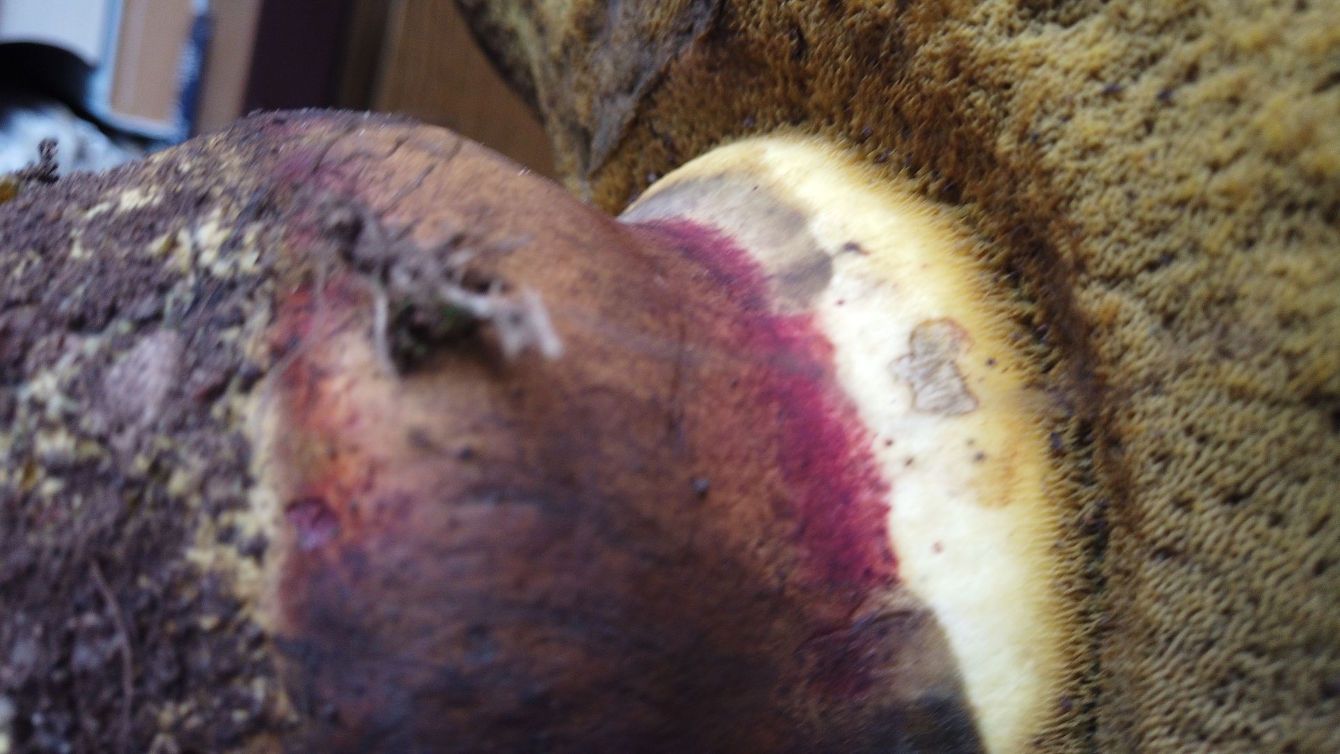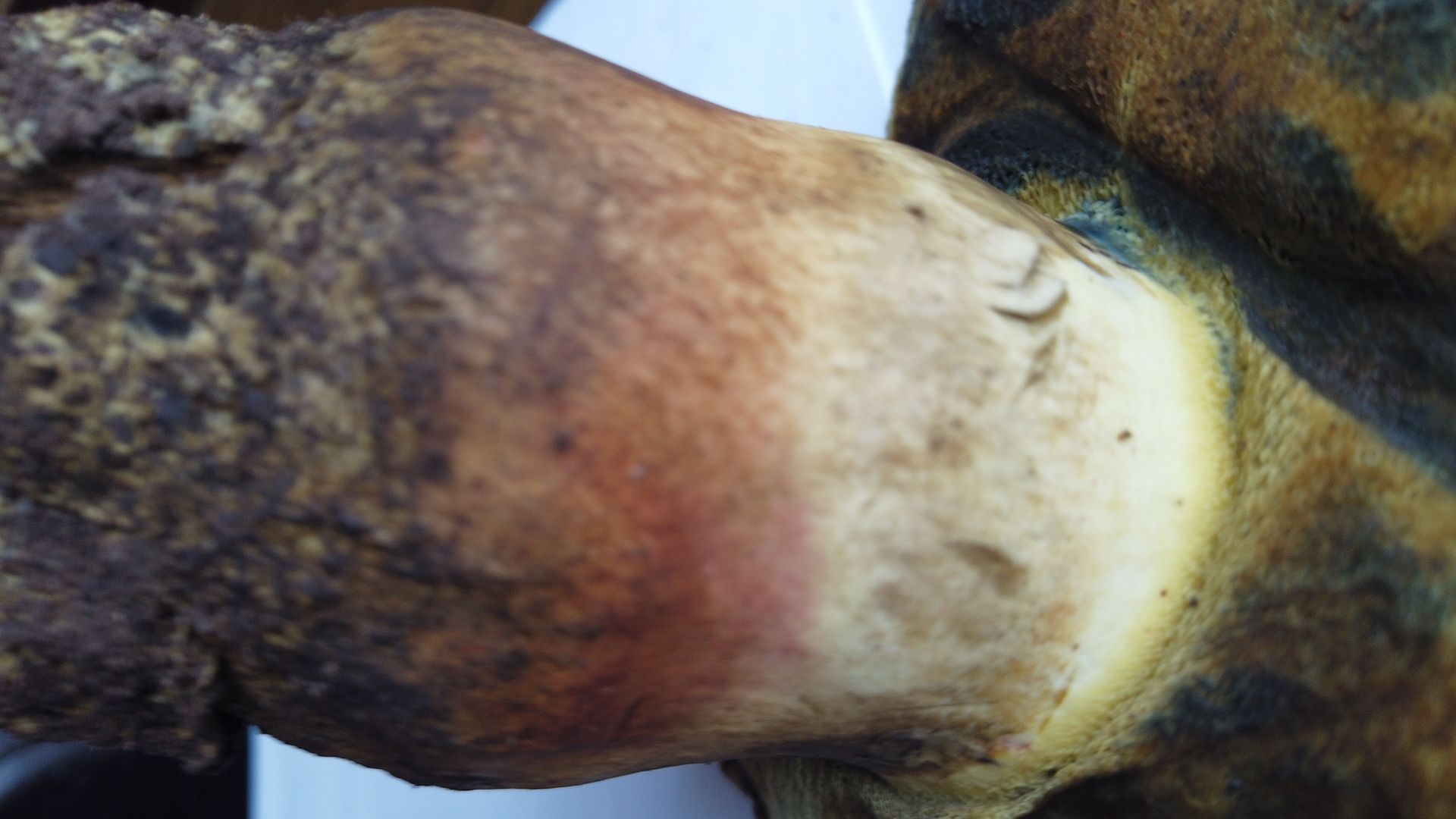 Stiel oben gelb.bräunlich, unten rot. schwaches Netz glaube ich zu erkennen, bin da aber ziemlich schlecht drin.