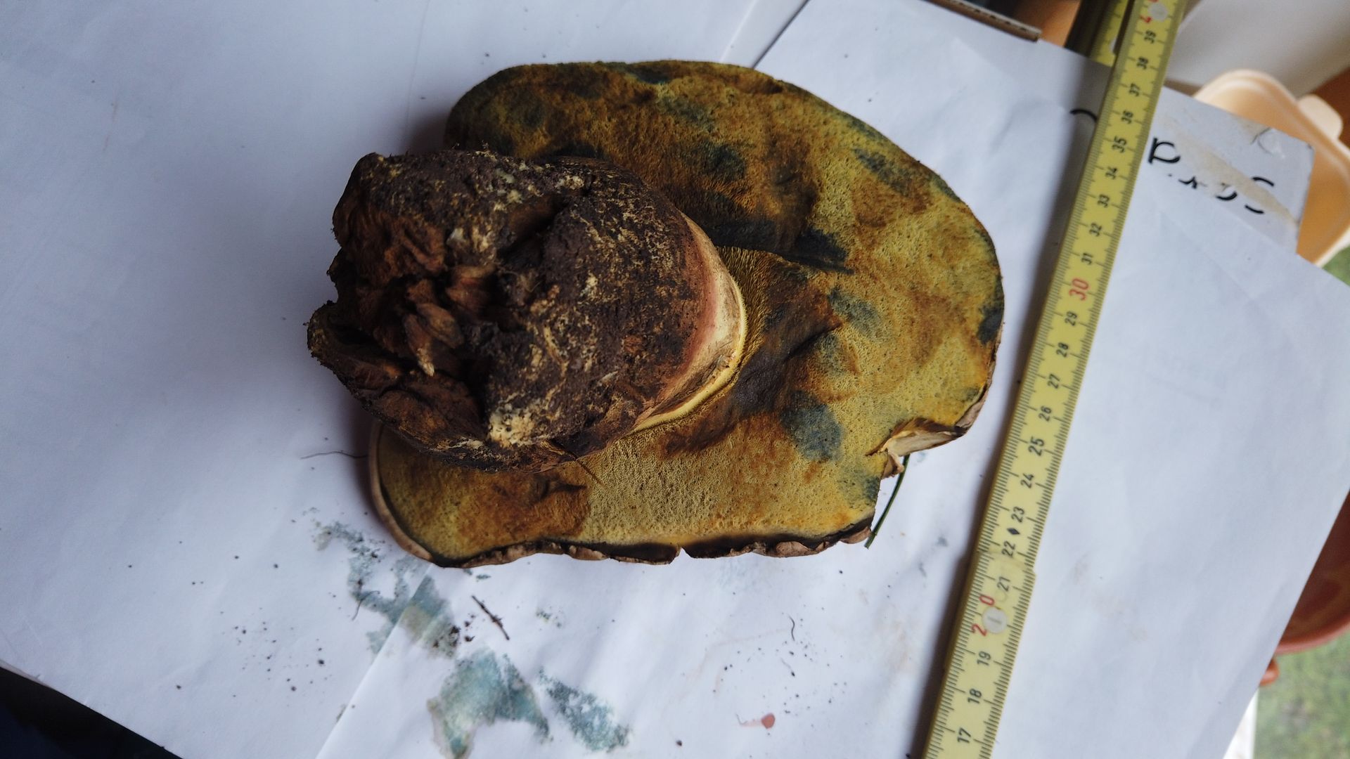 In meinen Büchern stehen die alle irgendwie viel kleiner drin.Es waren übrigens noch zwei fast ebenso riesige Fruchtkörper da. Die waren aber noch älter, also habe ich sie stehen lassen.