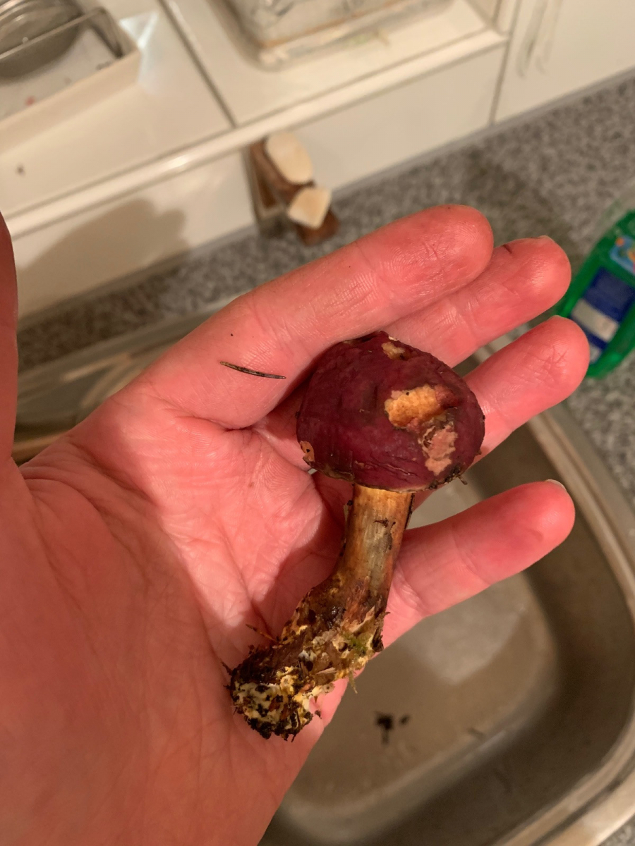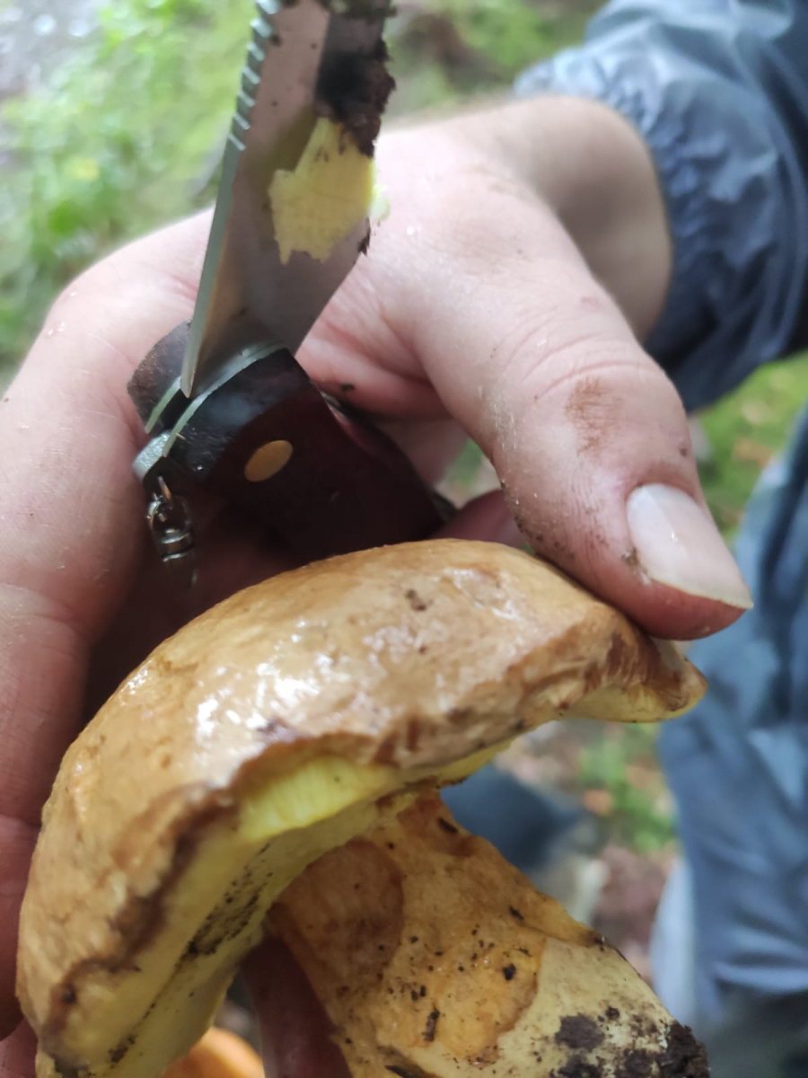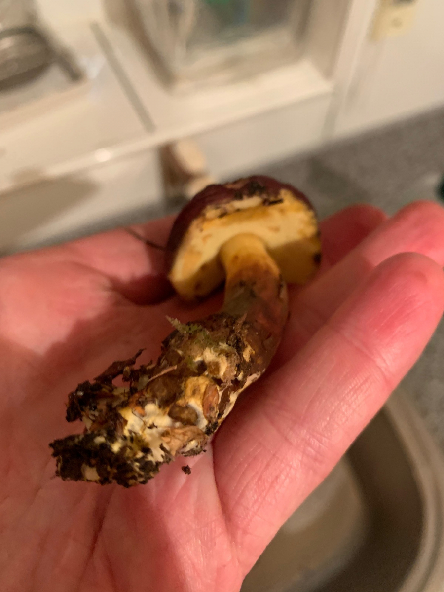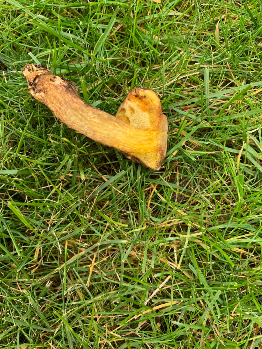 Als Bonus gibts noch diesen Röhrling, denn ich für Butyriboletus subappendiculatus halte, ich habe ihn gepflückt und weggeworfen gefunden und ihn im Wald aufgehängt, dass er sporen kann. Er hatte an der Stielspitze ein gelbliches Netz, dass man auf den Fotos leider nicht sieht.