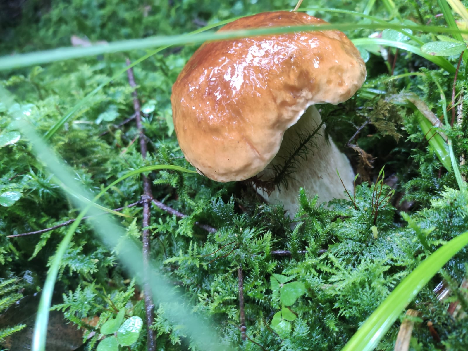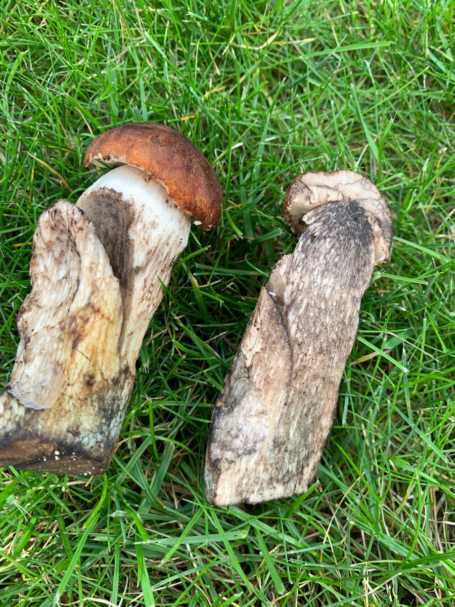 Auch umgefallen war dieser riesige Steinpilz, der übrigens noch komplett fest war.