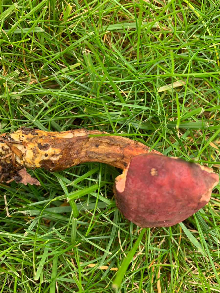 Als Bonus gibts noch diesen Röhrling, denn ich für Butyriboletus subappendiculatus halte, ich habe ihn gepflückt und weggeworfen gefunden und ihn im Wald aufgehängt, dass er sporen kann. Er hatte an der Stielspitze ein gelbliches Netz, dass man auf den Fotos leider nicht sieht.