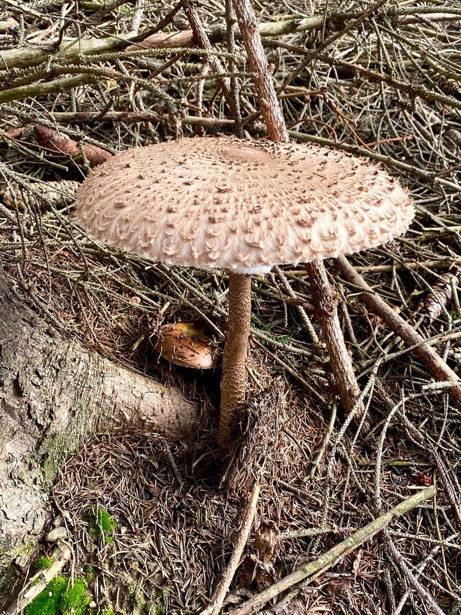 in der näheren Umgebung sehr viele Parasolpilzeund Fliegenpilze (Beispiele)