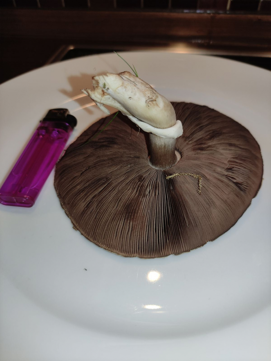 definitiv keine Wiesenchampignons, außerdem mit so dunklen Lamellen sowieso schon nicht mehr genießbar. Du hast die Stielbasis abgeschnitten, da hätte man ggf. noch ein wichtiges Merkmal des Karbolchampignons erkennen können. Champignons sind eine komplizierte Gattung. Um eine Art zu erkennen brauchst du Pilze in allen Altrsstadien und vor allem komplette Fruchtkörper. Oft reicht das aber auch noch nicht und brauchst noch ein Mikroskop.