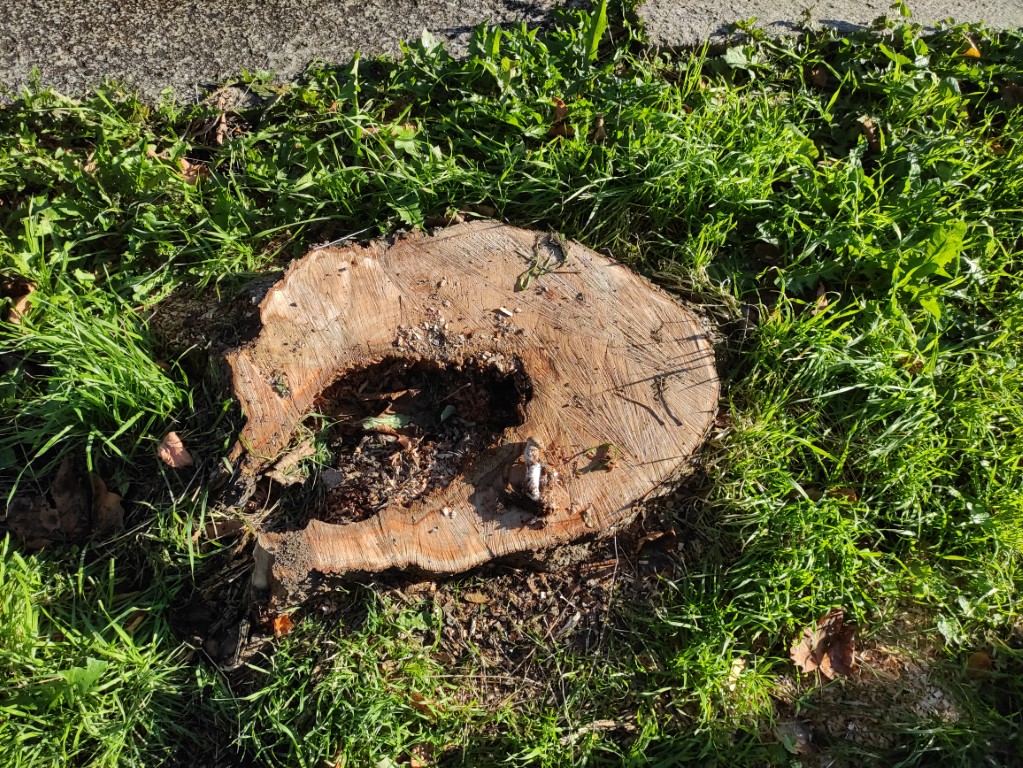 Fundort war an einem ehemaligen Straßenbaum (Ahorn), der dieses Jahr gefällt wurde, vermutlich wegen verringerter Standfestigkeit.