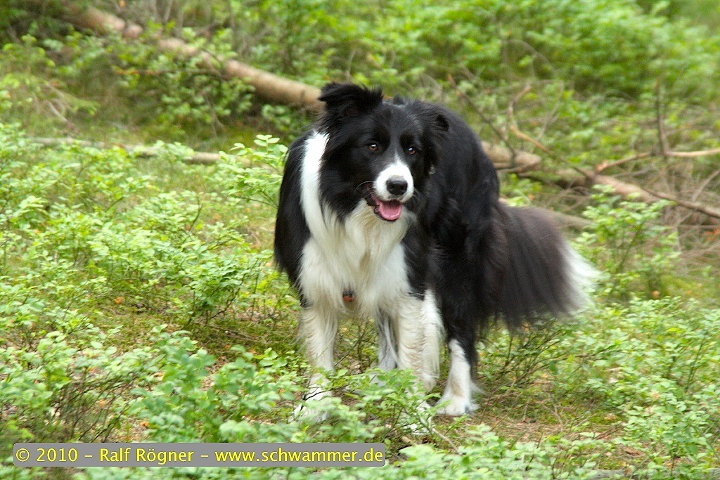 Meine Frau Erika, unsere Borderdame Molly und ich haben uns gegen 13.00 Uhr auf den Weg gemacht - dieses Mal eine Brotzeit, Getränke für uns und Molly–™s Wasserflasche im Gepäck, denn bei 24 ° Celsius geht es einfach nicht ohne. Im Wald war es dann zum Glück nicht so drückend heiß und ein leichter Wind machte sich angenehm bemerkbar.