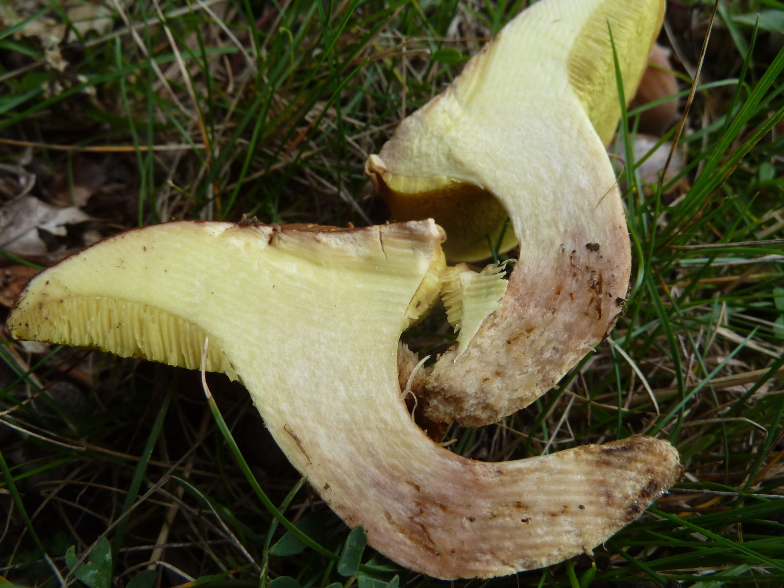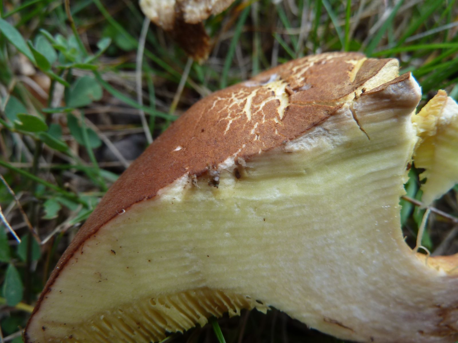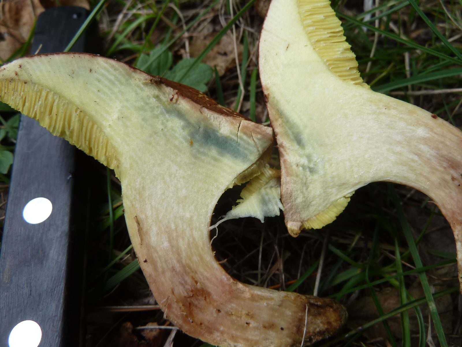 dieses Einzelexemplar habe ich heute unter einer alten Eiche (Stammdurchmesser fast einen Meter) gefunden. Geruch schwach säuerlich wie Rotfußröhrling. Das Fleisch blaut im Hutbereich nach ein bis zwei Minuten schwach, diese Verfärbung verschwindet nach einiger Zeit wieder. Ist das der Falsche Rotfuß-Röhrling, Eichen-Filzröhrling oder was anderes? Ich bekomme keine Bestimmung hin ![]()