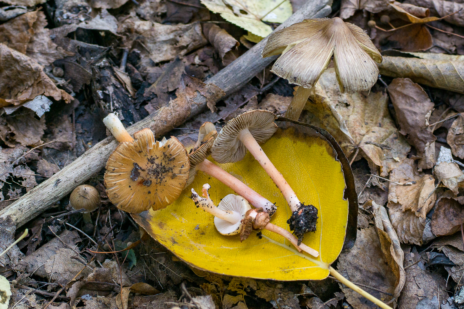 5. Der hier könnte schwierig werden... Auf Totholz mit Velum am Hut und Ringzone. Tubaria conspersa ist das nicht, oder?