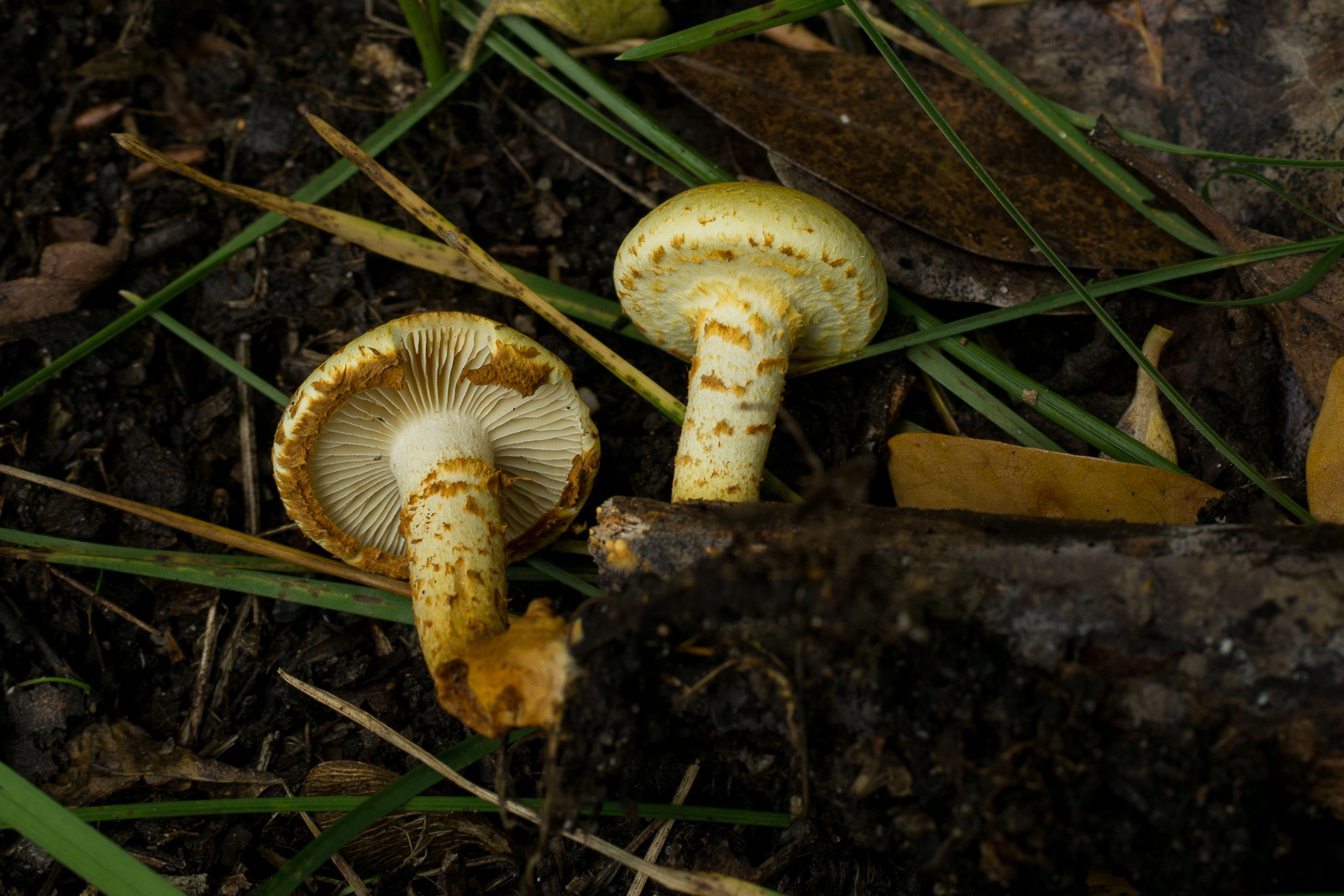 3. 2 einsame Schüpplinge ca. 30cm entfernt voneinander auf kleinen Holzstückchen am Boden wachsend. Nur noch schwach schmierig. Würde ich gerne Pholiota lucifera nennen wollen?