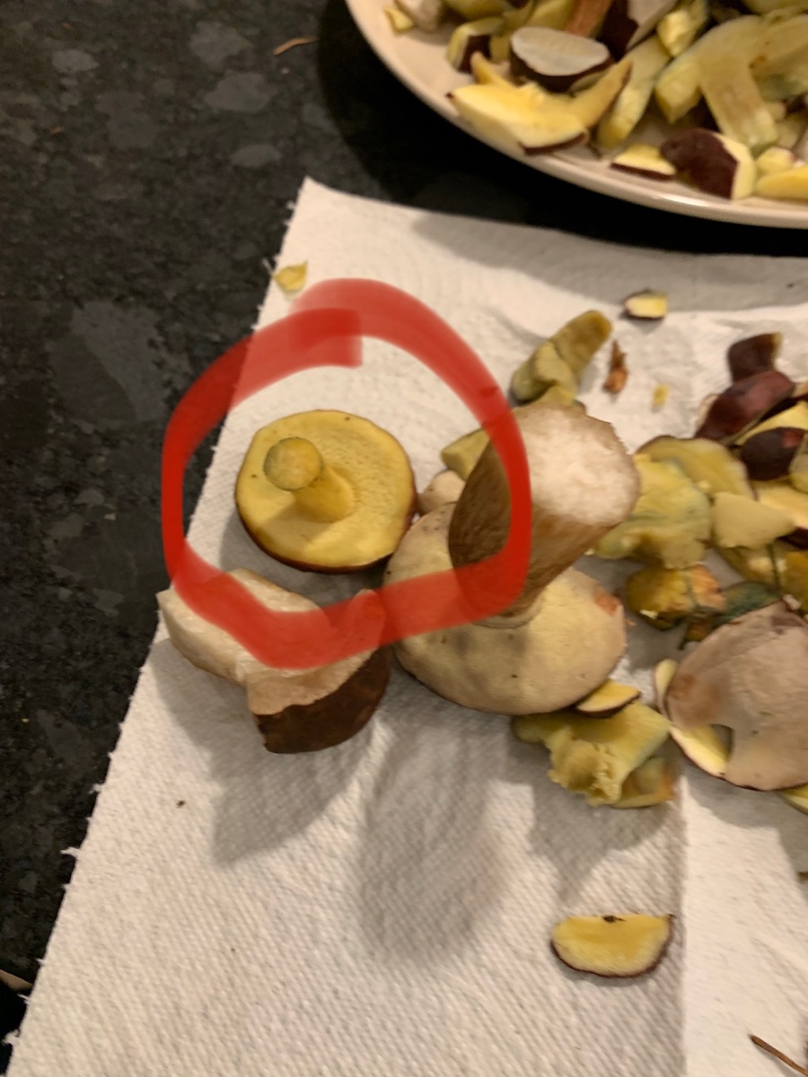 Stand im bemoosten feuchten Mischwald, fruchtkörper unterschiedliche Größen von 3-7 cm etwa, nach Querschnitt des Stils bläute dieser beim putzen auch. Die Röhren bläuten jedoch nicht nach Druck, wie bspw beim Maronen.