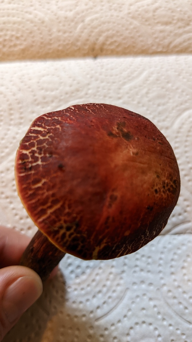 Danke für den Hinweis. Da er beim Schnitt allerdings nur sehr schwach und langsam blau wird und Xerocomellus ripariellus sich dagegen scheinbar schnell stark blau verfärben soll, würde ich bei meiner ersten Vermutung bleiben?