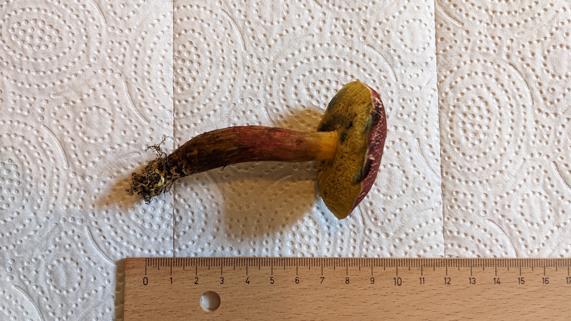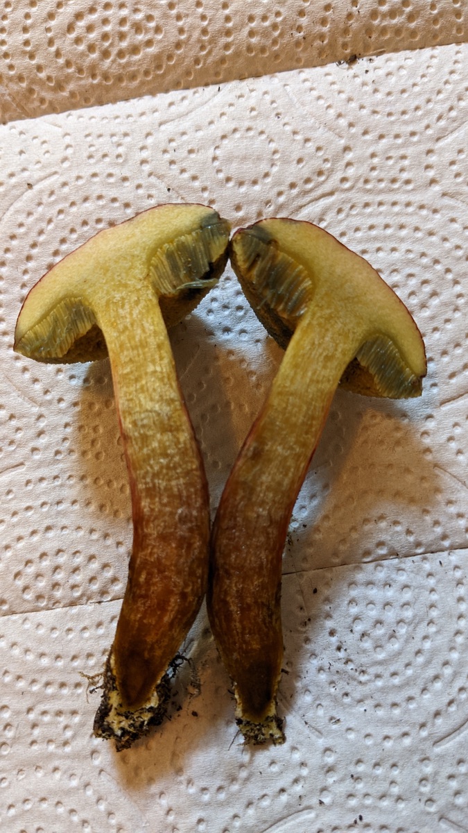 Danke für den Hinweis. Da er beim Schnitt allerdings nur sehr schwach und langsam blau wird und Xerocomellus ripariellus sich dagegen scheinbar schnell stark blau verfärben soll, würde ich bei meiner ersten Vermutung bleiben?