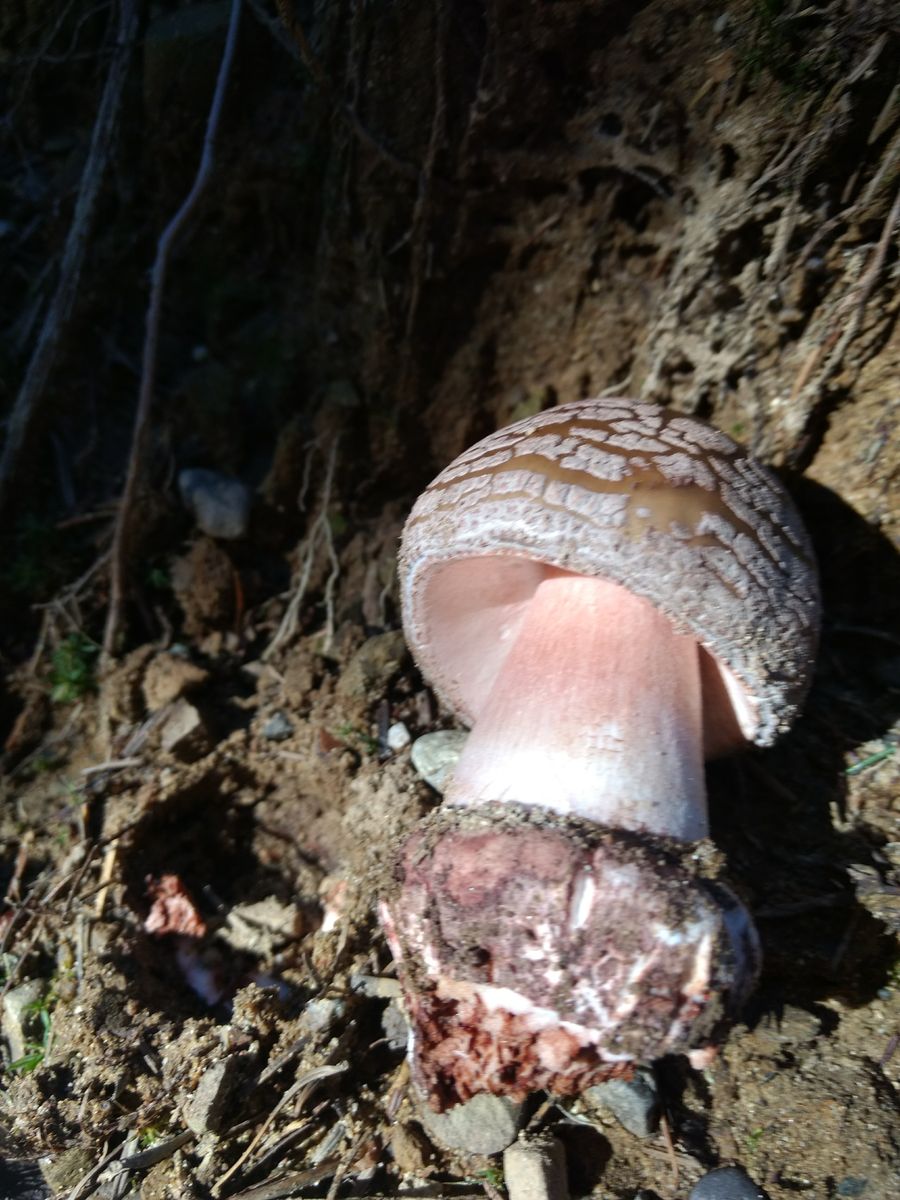 kann gut sein, die rötlichen/rosalichen Farbtöne sind zu sehen, aber die geriefte Manschette nicht. Da der noch recht jung ist und die Teilhülle noch geschlossen müsste man den durchschneiden und die Teilhülle vorsichtig abmachen und nachsehen, bzw. so versuchen sie abzumachen.