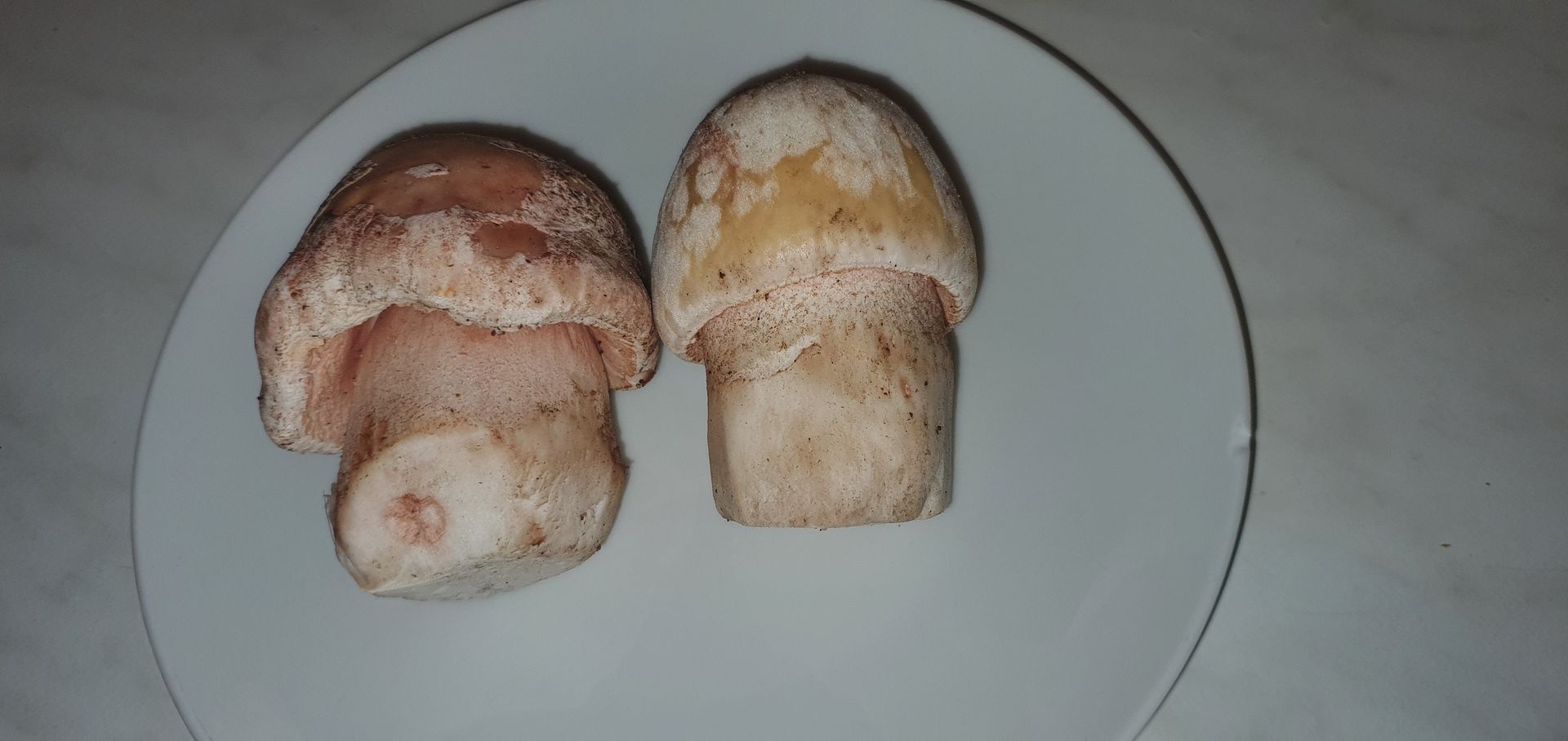 Sind allerdings Bilder aus der Küche mit ungünstigem Licht und Fruchtkörper ohne Knolle, die Fotos waren eben nur für mich, weils so knackharte richtig dicke Dinger waren, die ich so in der Form selten finde und fast madenfrei. So kann man die nicht zu 100% erkennen, meine auch nicht, waren aber welche. Der linke ist schon deutlich, aber der rechte weniger.