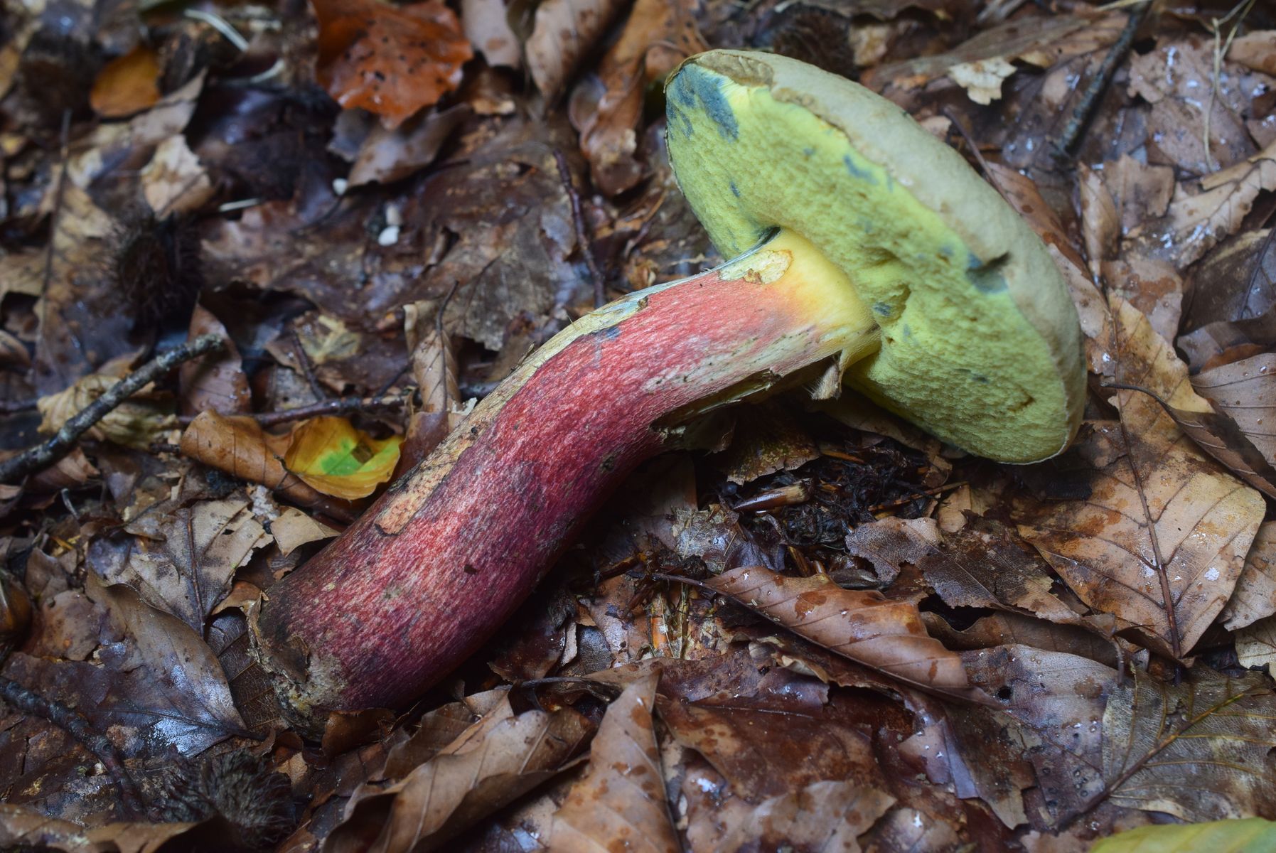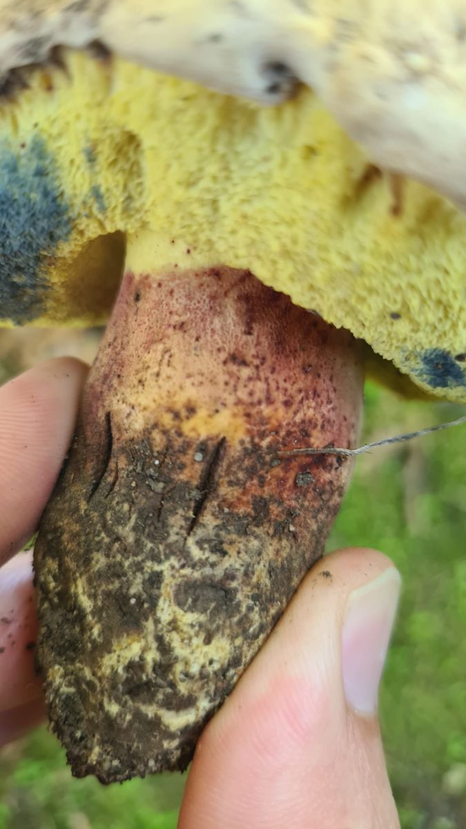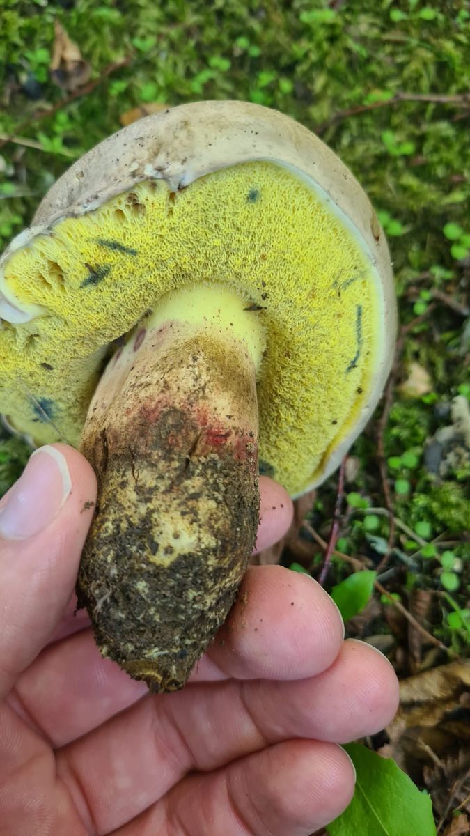 Für einen Rotfußröhrling ist der Stil aber doch eigentlich zu dick und die Blaufärbung zu stark? Die Hexenröhrling hätte ich durch die rein gelbe Röhrenfarbe ausgeschlossen. Ich habe auch noch weitere Gattungen bei den Rotfußröhrlingen in Verdacht (z.B. Starkblauender Rotfußröhrling), aber auch hier bin ich mir nicht sicher. ![]()