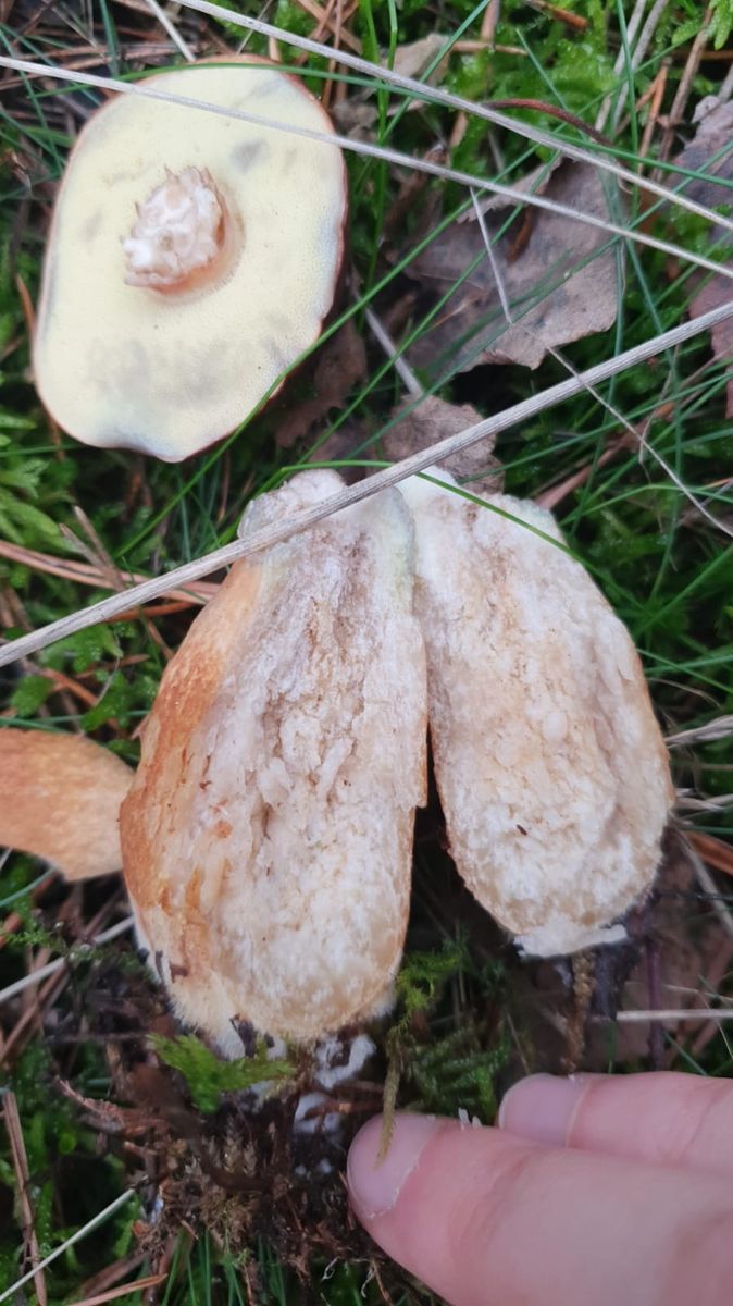 ich habe in der Nähe des Müggelsee in Berlin einige Pilze gefunden, ich glaube es könnten Steinpilze sein, möchte aber kein Risiko eingehen. Ich habe viele dicht beieinander gefunden, auch das Innere habe ich fotografiert. Kann mir jemand helfen?