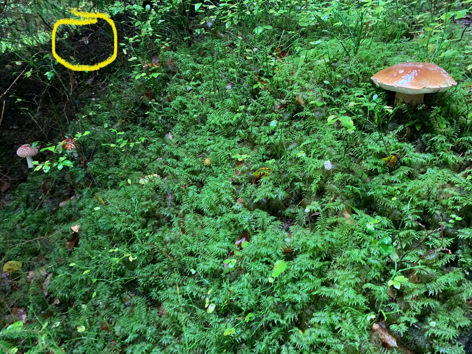 Auf meiner Pilztour im Nadelwald fiel mir unter anderem eines auf: Pilze die angeblich kalkfliehend und säureliebend seien wachsen teilweise wirklich direkt neben kalkliebenden oder sogar auf Kalk beschränkten Arten. Hier ein besonders krasses Bild auf dem Fliegenpilze, Steinpilze und Ziegelgelbe Schleimköpfe wirklich direkt nebeneinander wuchsen, da war kein Meter dazwischen. War bisschen schwer zu fotografieren, aber das gelb umkreiste ist wenn mich nicht wirklich alles täuscht ein ziegelgelber Schleimkopf und da standen noch einige mehr. Es hat wie aus Eimern geschüttet aber der Stiel war kein bisschen Schleimig.