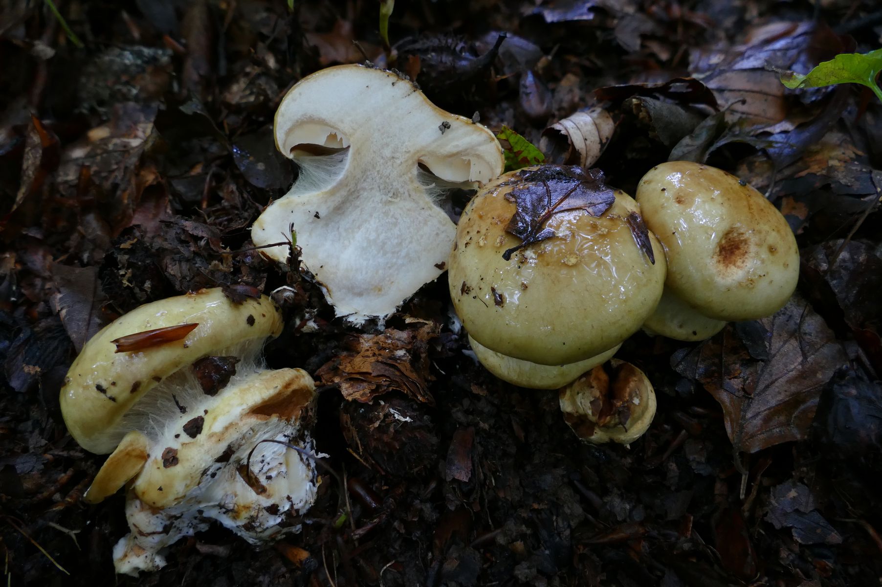 05 Cortinarius spec EDIT: oder doch schlicht Hebeloma bei Eiche und größerer Buchenhecke, etwas entfernt auch Birke