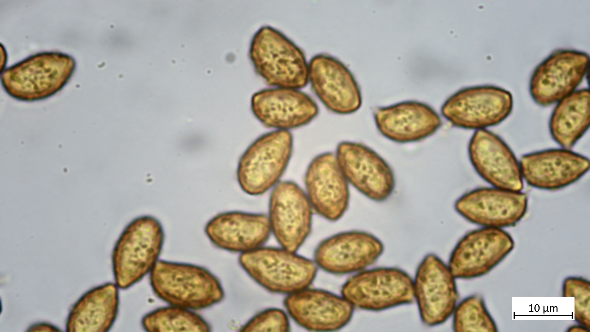 Sporen: 9,7-11,5 µm (av. 10,5 µm, SD 0,5 µm) x 5,8-6,3 µm (av. 6,0 µm, SD 0,1 µm); Q = 1,6-1,9 (av. 1,7, SD 0,1)(n = 12)
