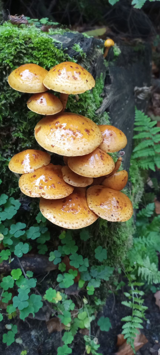 gestern fand ich in der Böhmischen Schweiz in einer kleinen, nicht verbrannten und scheinbar dauerfeuchten Klamm auf einem unbestimmten Stumpf die folgenden Fruchtkörper. Ich würde die gerne als Sparriger Schüppling (Pholiota squarrosa) ablegen, falls niemand eine andere Idee hat. Ich war mir sofort so sicher, dass ich vergessen habe zu schnuppern oder ein Schnitt-Bild anzufertigen. Geht der, auch mit diesem extrem feuchten Hut so durch?