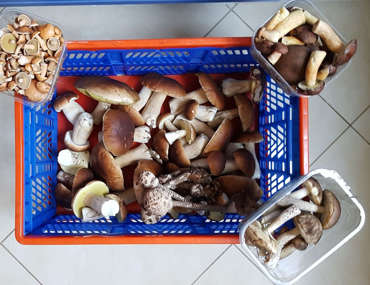 Heute war der erste Tag hier am Wiehengebirge, der richtig gut war. Eine Stelle mit etwa 5-6 Kg frischen jungen Steinpilzen ==konfetti