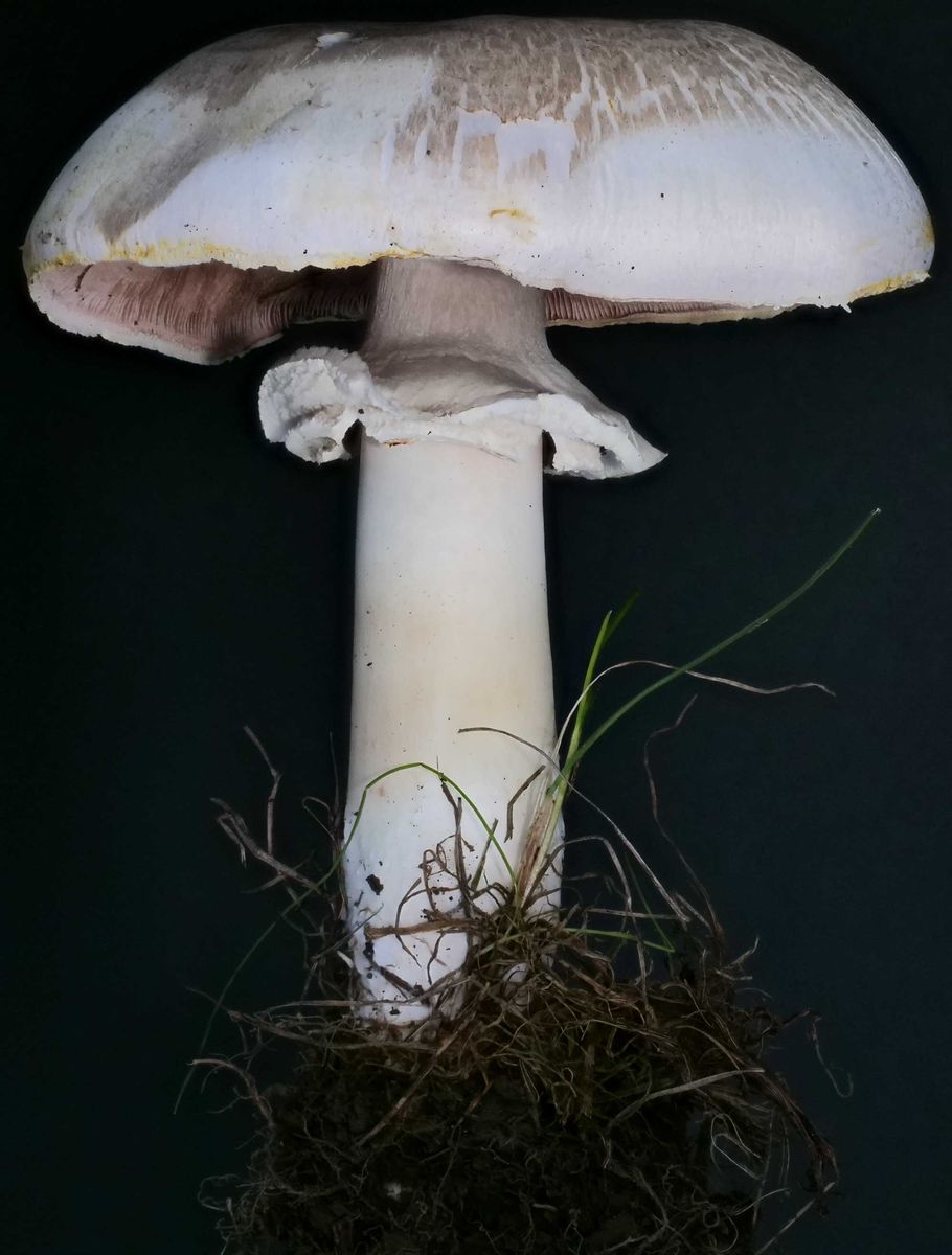 Champignon, geruchlos, doppelter Ring, gilbend, Stielspitze wird gelb