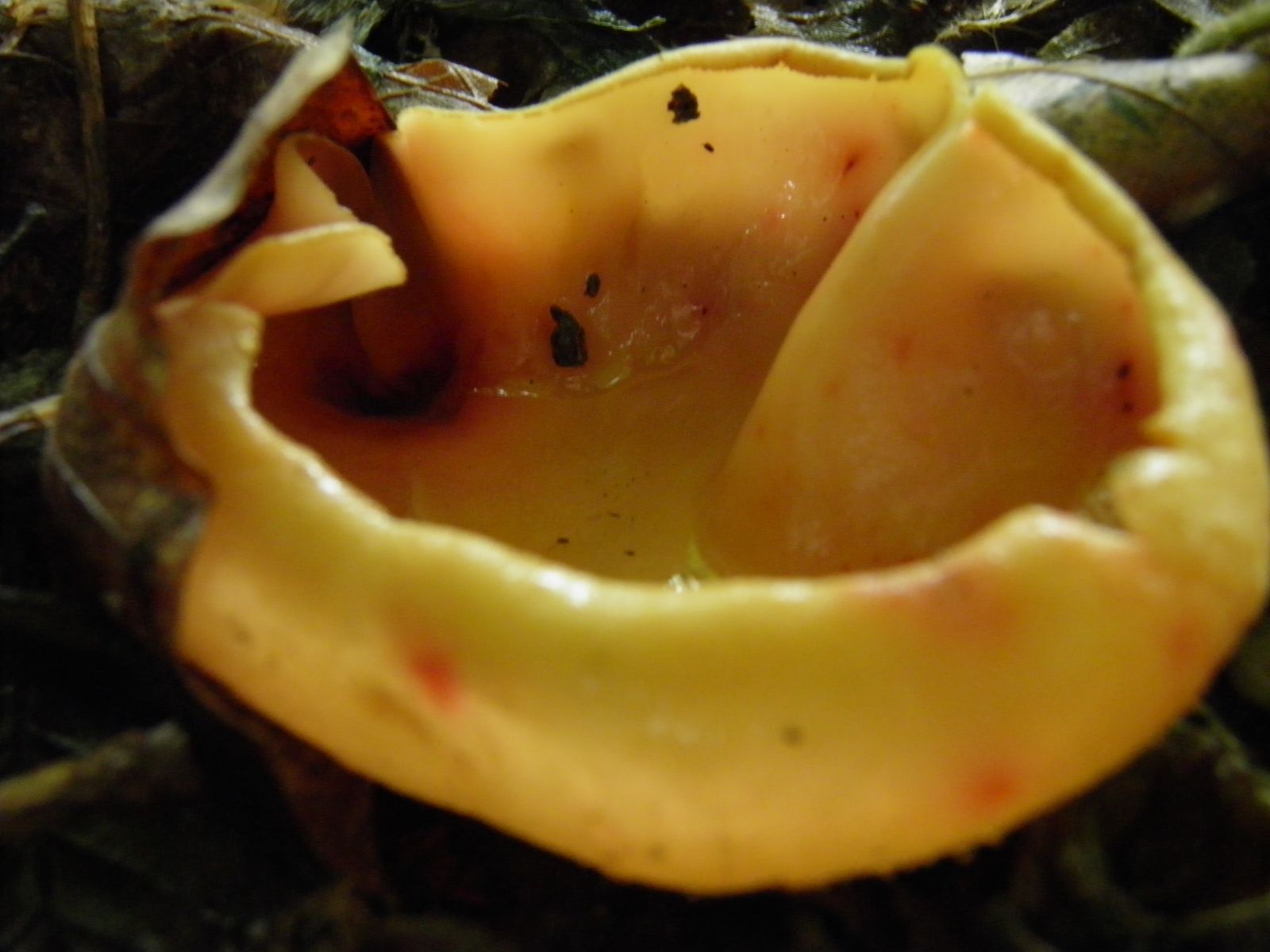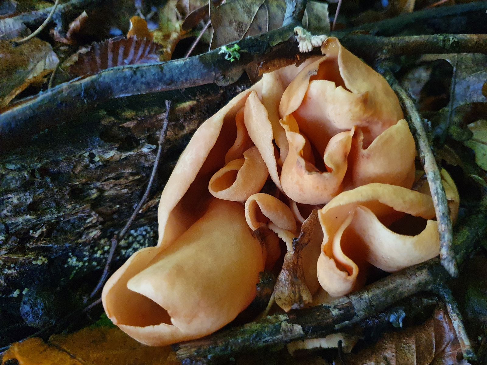 15 für mich ein Erstfund, vlt geht es Richtung Eselsohr, knappe 10cm, tw mit roten Punkten, Orangebecherlinge sind es sicher nicht