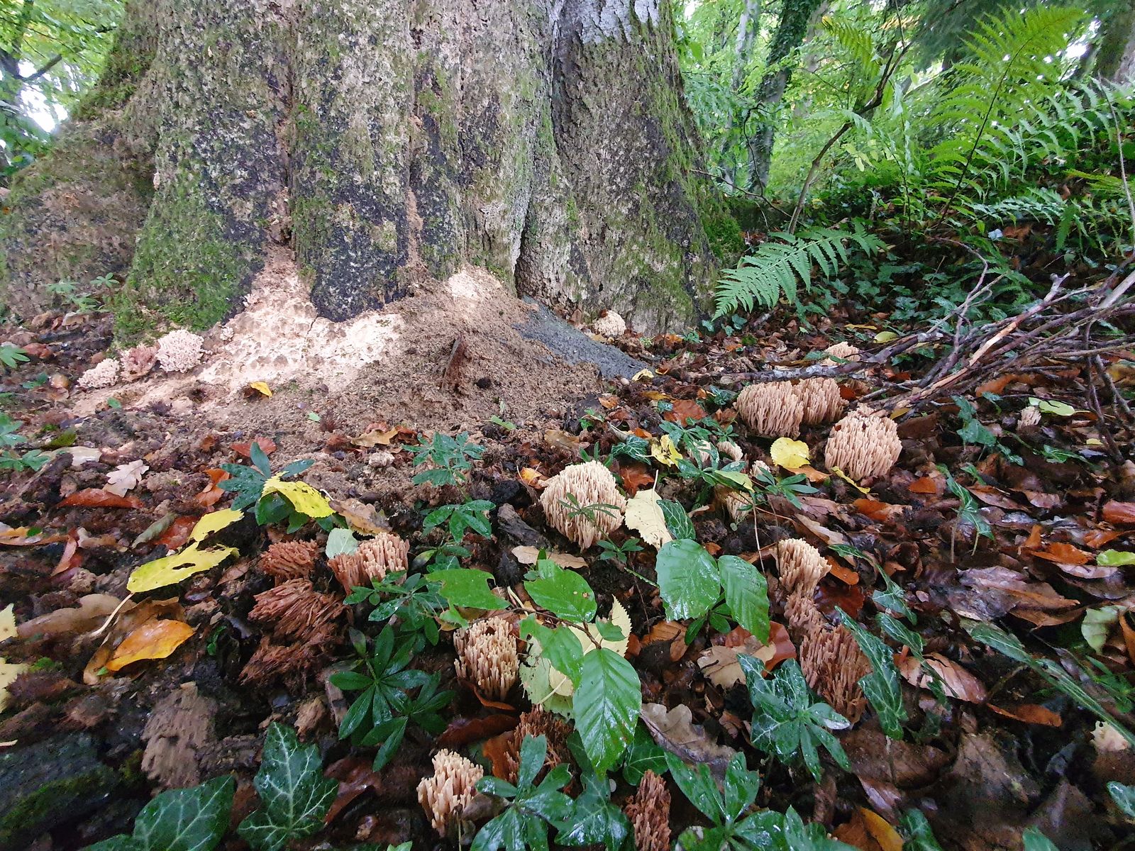 6 Korallen (vlt Steife) unter einer betagten Buche