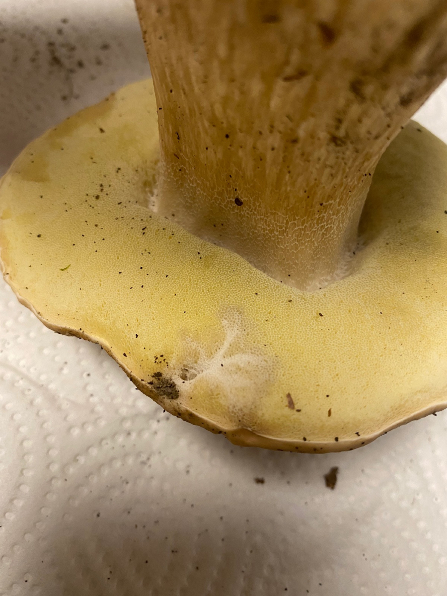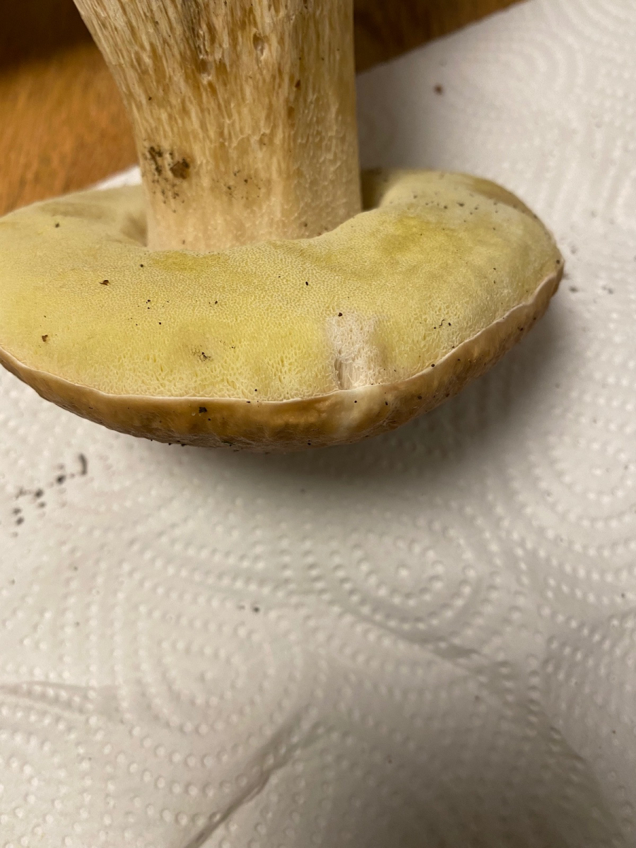 Hallo ich habe heute ein paar schöne Steinpilze gefunden, doch einer hatte leicht helle Stellen an den Schwämmen. Ist es schon Schimmel ? Danke für die Hilfe.