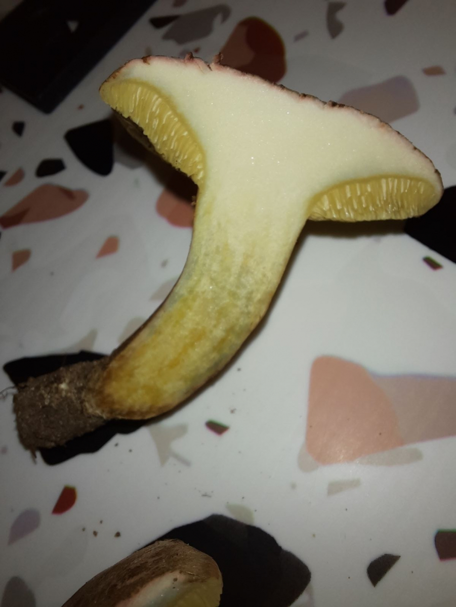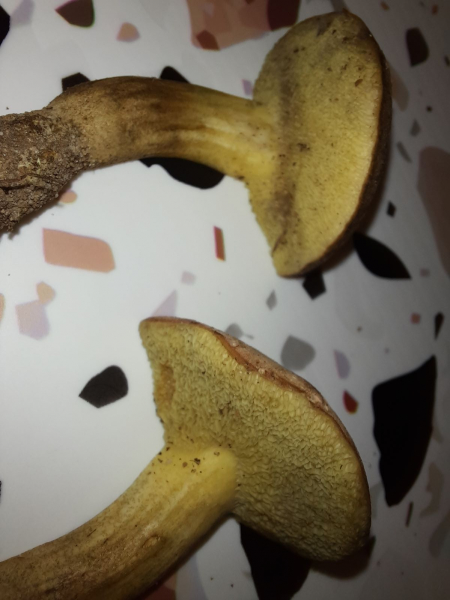 für X. porosporus müsste das Fleisch im unteren Stielbereich "schmutziger" sein.
