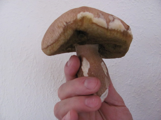 Auf meinem Weg zur Arbeit mit dem Fahrrad im Walldorfer Wald, habe ich diesen, meinen allerersten, Steinpilz gefunden. Bin total begeistert! Es waren noch zwei dort in der Nähe allerdings von Schnecken gefressen.