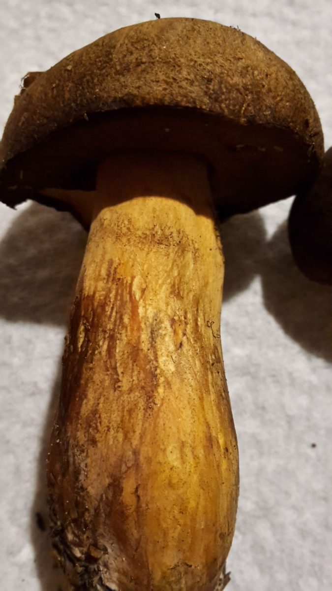 So bin ich gestern bei einer Abkürzung durch den Wald unverhofft über eine Horde Pilze gestolpert. Maronen, Butterpilze, etwas abseits auch flockenstieliger Hexenröhrling und dieser Pilz (siehe Bilder). Und da stehe ich wieder und kann ihn nicht einordnen. Für mich sieht das weder nach Steinpilz, Bitterpilz noch Birkenpilz aus. Ich finde leider auch keine treffenden Bilder in Kugel. Hat jemand eine Idee? Der unten jüngere Pilz bläut ganz leicht. Innen ist er gelb, außen auch tendenziell alles gelb, insbesondere das Futter. Anlecken bleibt ohne Geschmack. Zum Vergleich hab ich teilweise Maronen dazu gelegt. Das letzte Bild zeigt den Querschnitt im Vergleich zum Querschnitt einer Marone. Im Futter sind viele Maden, aber im Pilz selber sehe ich Null Madenbefall.