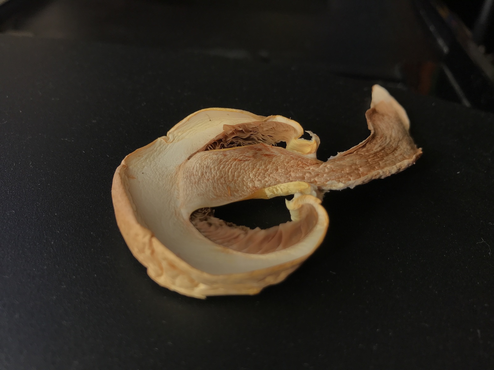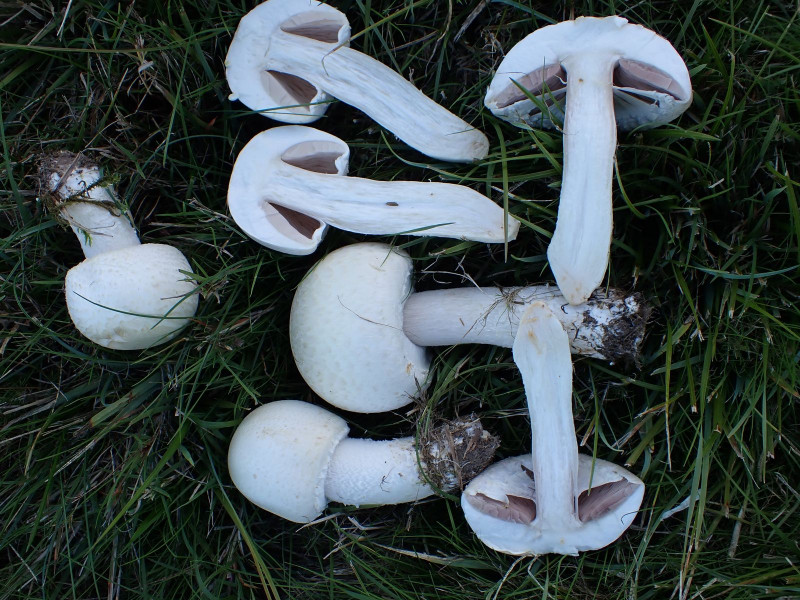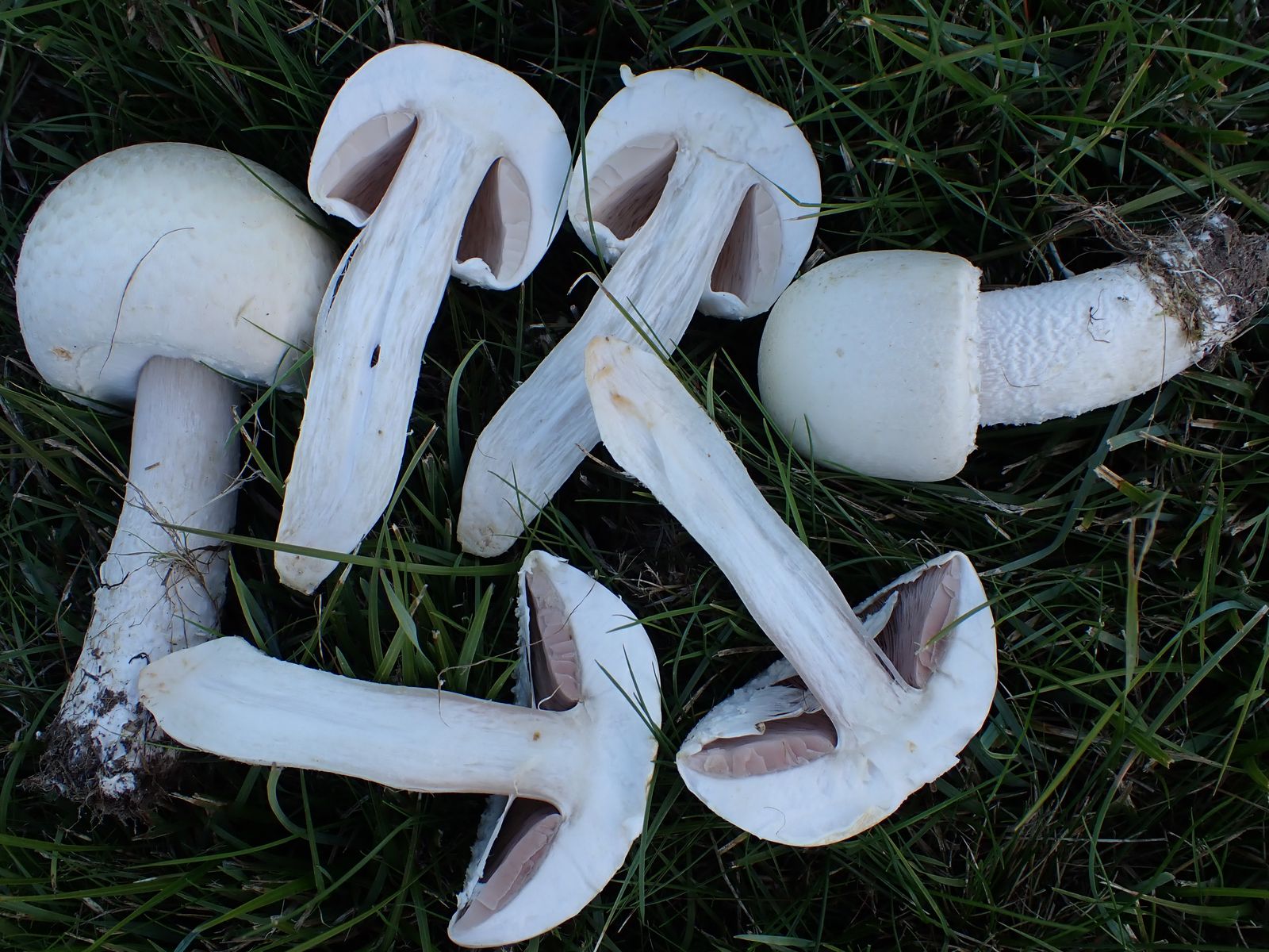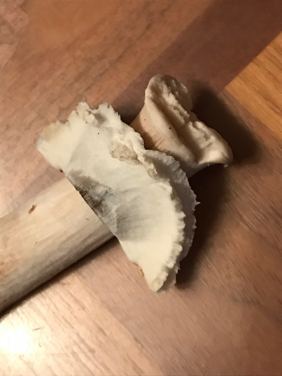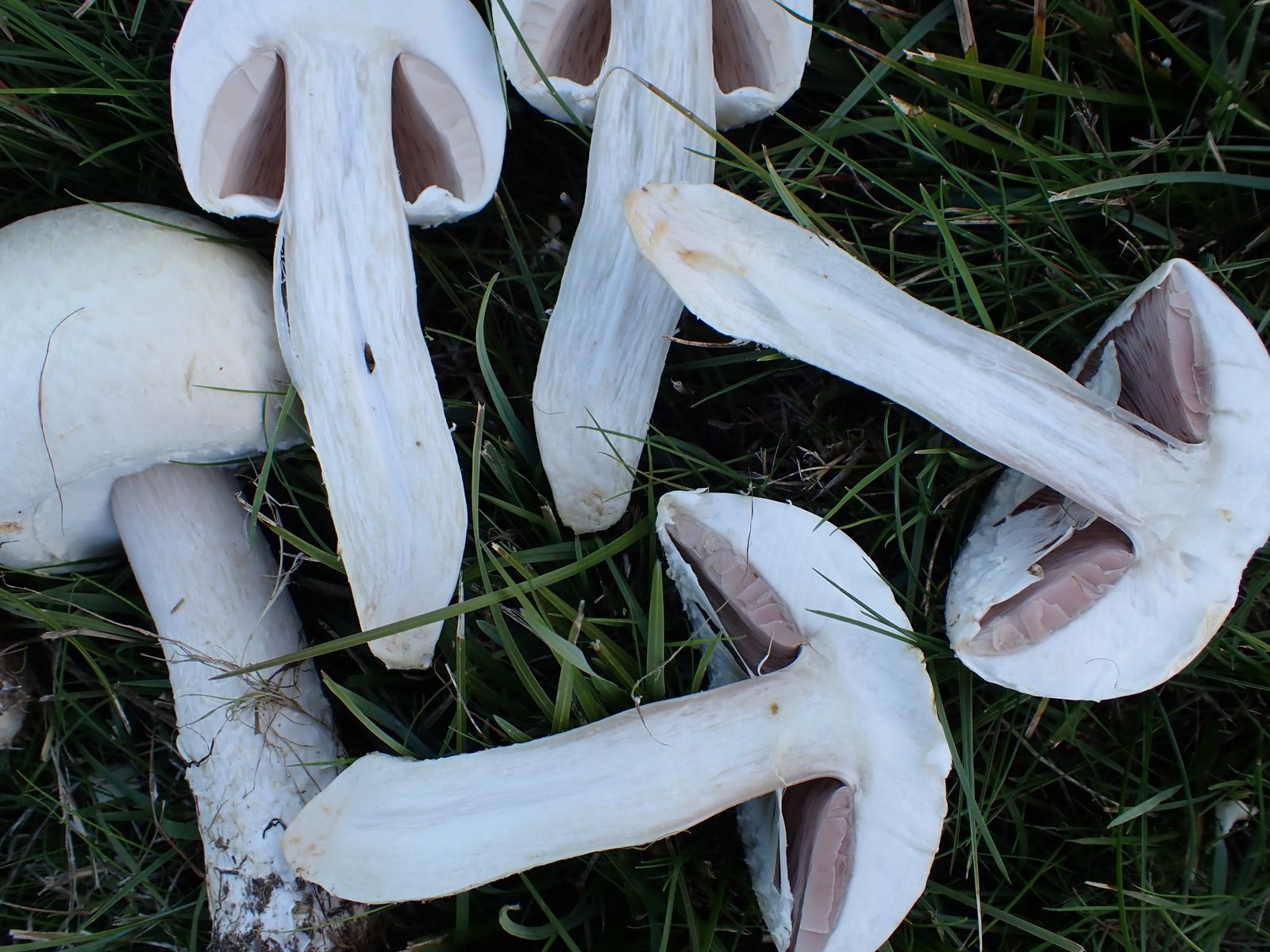 Schnittbild: Stiel rötet dezent in der Stielbasis, nach längerer Zeit leichte Rötung im ganzen Stiel