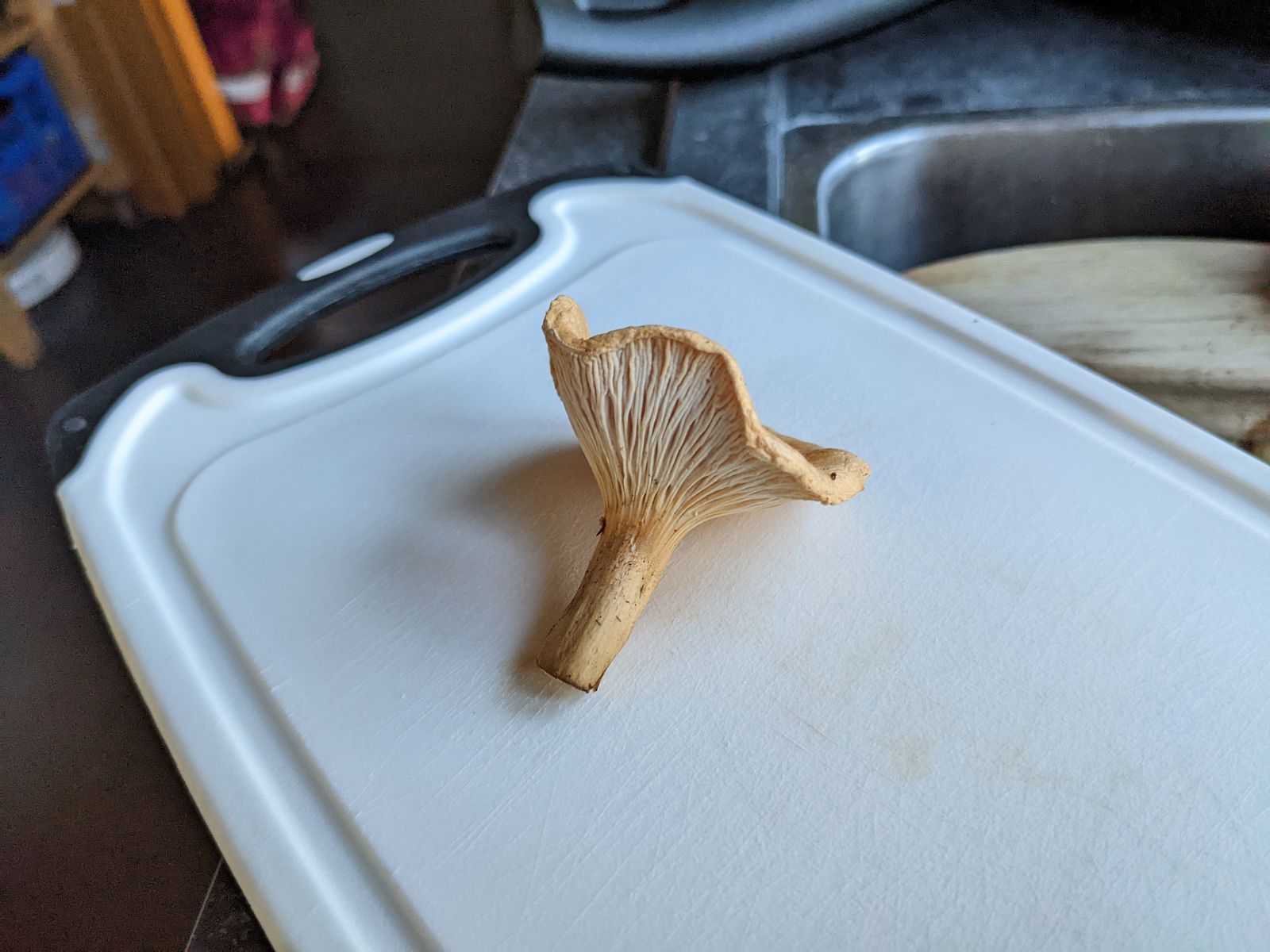Mich stört, dass der Gesamteindruck sehr zierlich ist, ich kenne Pfifferlinge gedrungener, und dass ich keine jungen Exemplare gefunden habe, die ja so typische Knubbel bilden.