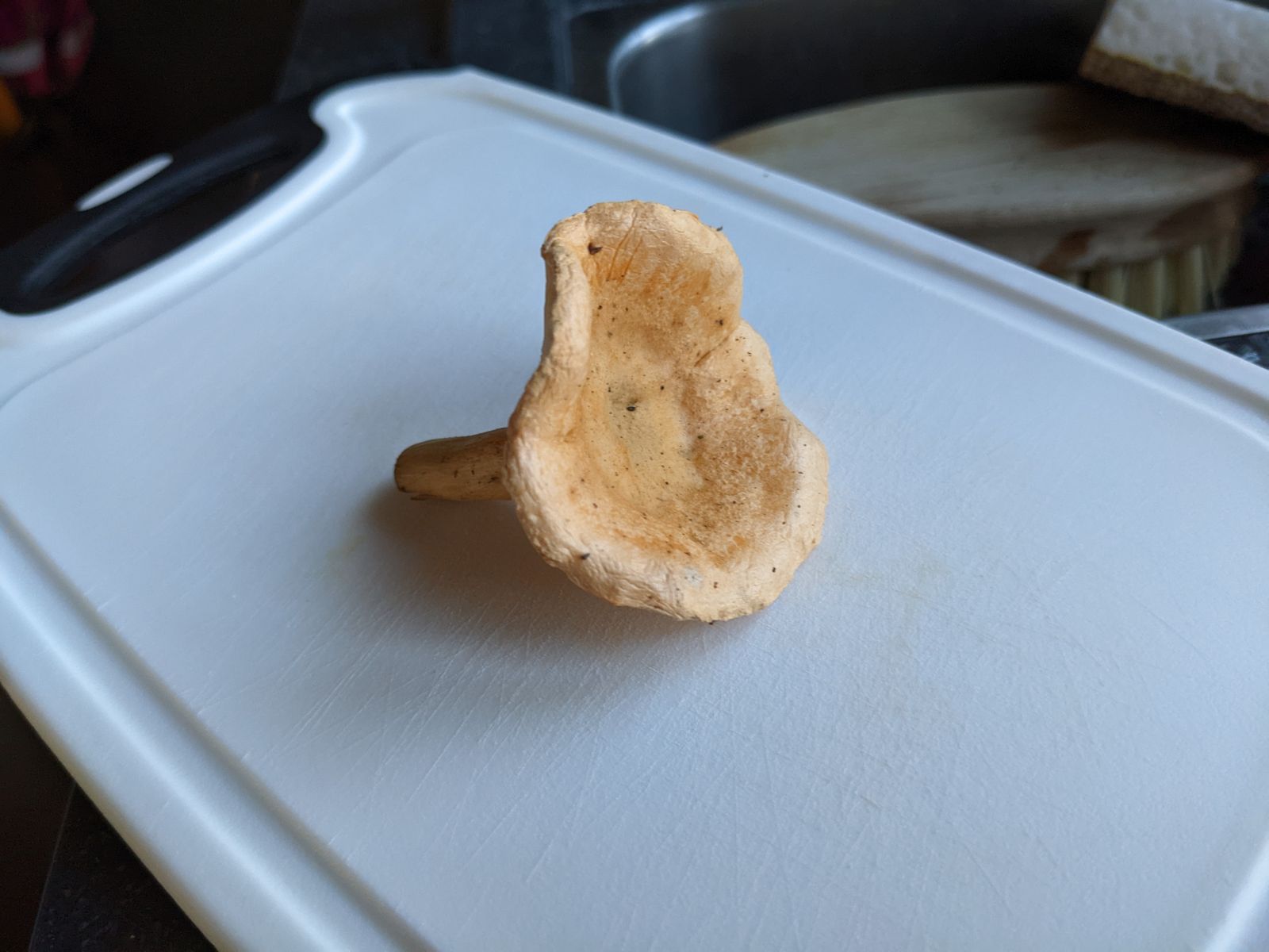 Zum Geruch: Ja, ist mit auch gleich aufgefallen, der typische Pfifferlingsgeruch fehlt. Der Pilz riecht eigentlich gar nicht...
