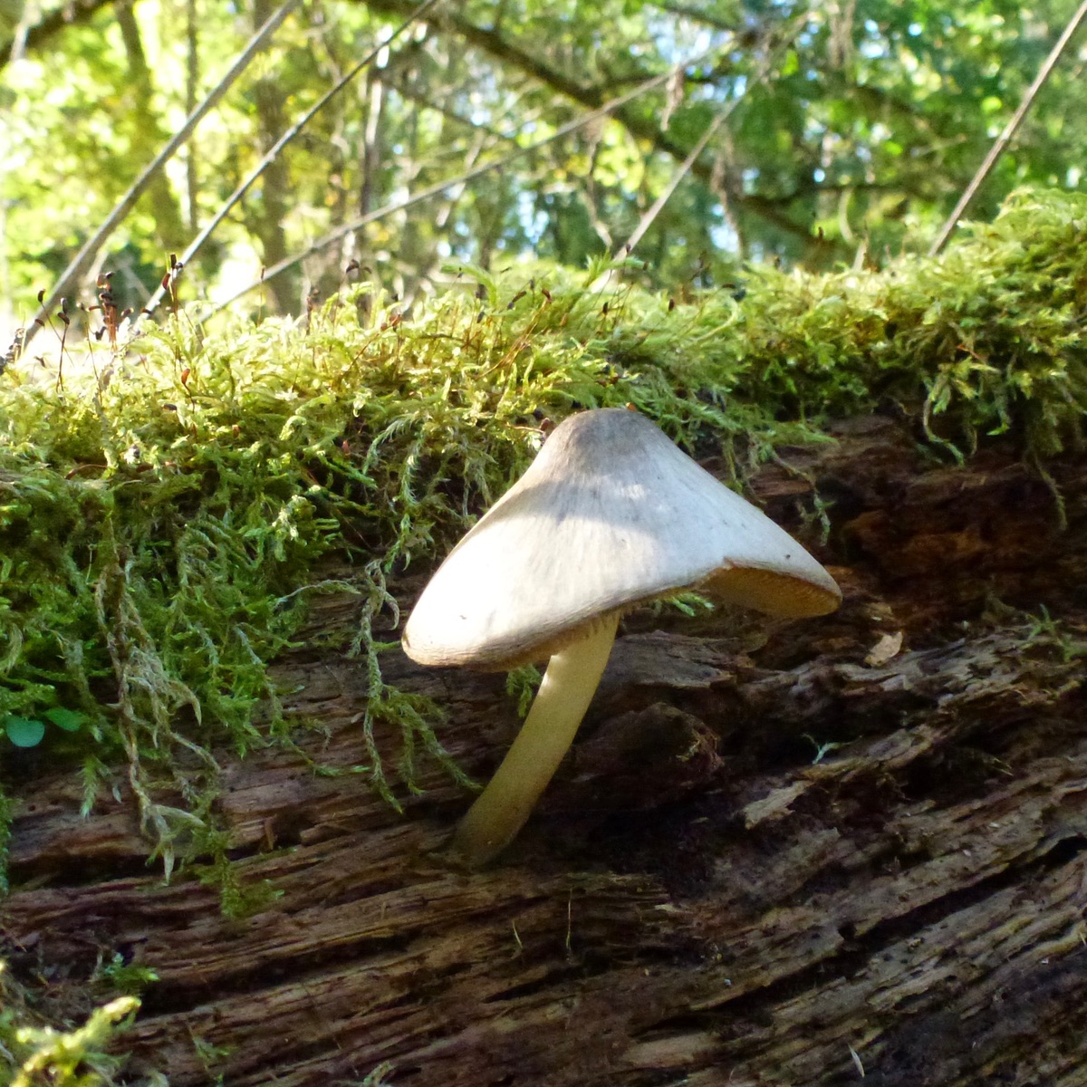 13. Stielporling, an vergrabenem Holz, mit kleinem Kollegen