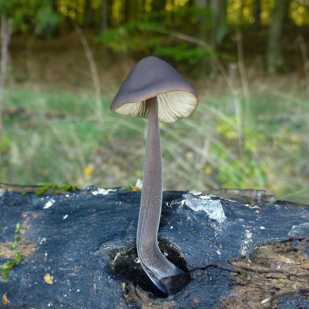 13. Stielporling, an vergrabenem Holz, mit kleinem Kollegen