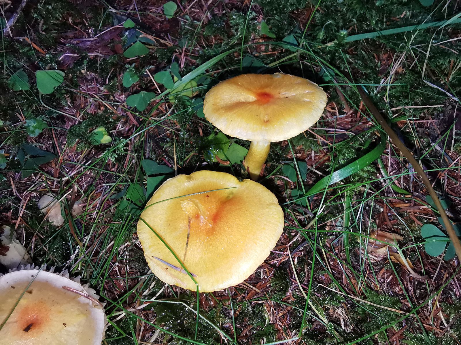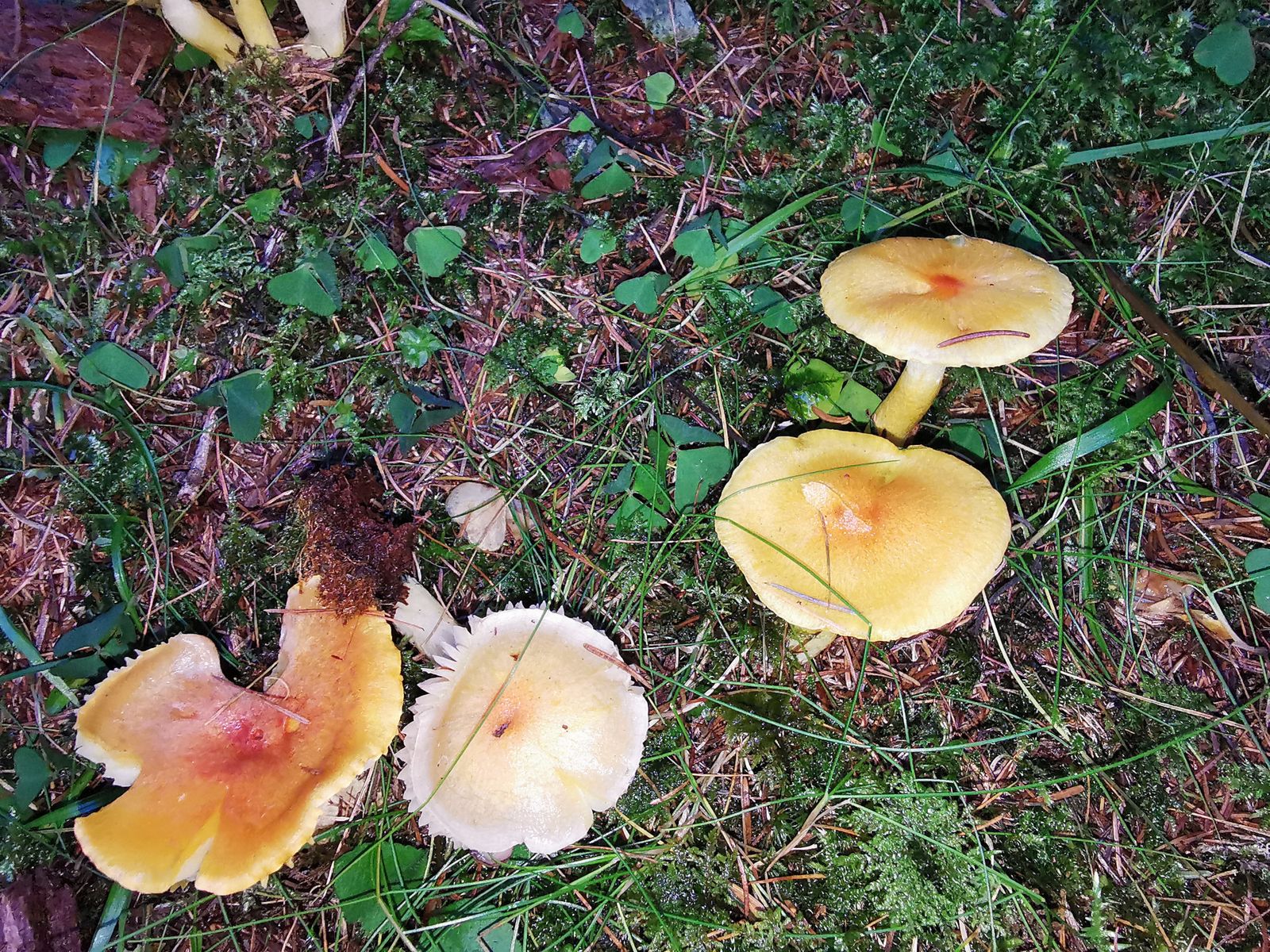 Bei uns stehen momentan ziemlich viele Schnecklinge im Wald (Fichten, Lärchen, Arven, ca. 1800m). Hygrophorus aureus denke ich kann ausgeschlossen werden, da dieser, soweit ich gelesen habe, nur bei zweinadligen Kiefern vorkommt. Jetzt schwanke ich zwischen dem normalen Lärchenschneckling - Hygrophorus lucorum und dem Orangelben Lärchenschneckling - Hygrophorus speciosus. Da die Pilze teilweise schon ziemlich ins orange gehen, bin ich eigentlich eher bei Hygrophorus speciosus. Über eure Einschätzung würde ich mich sehr freuen.