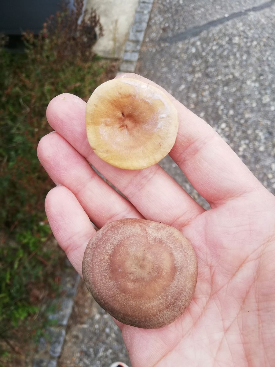 Neben diesen unbekannten Milchlingen gedeihte wie schon in den Vorjahren der scharfe Haselmilchling (mit dunkleren Hutfarben und gezonten Bereichen).