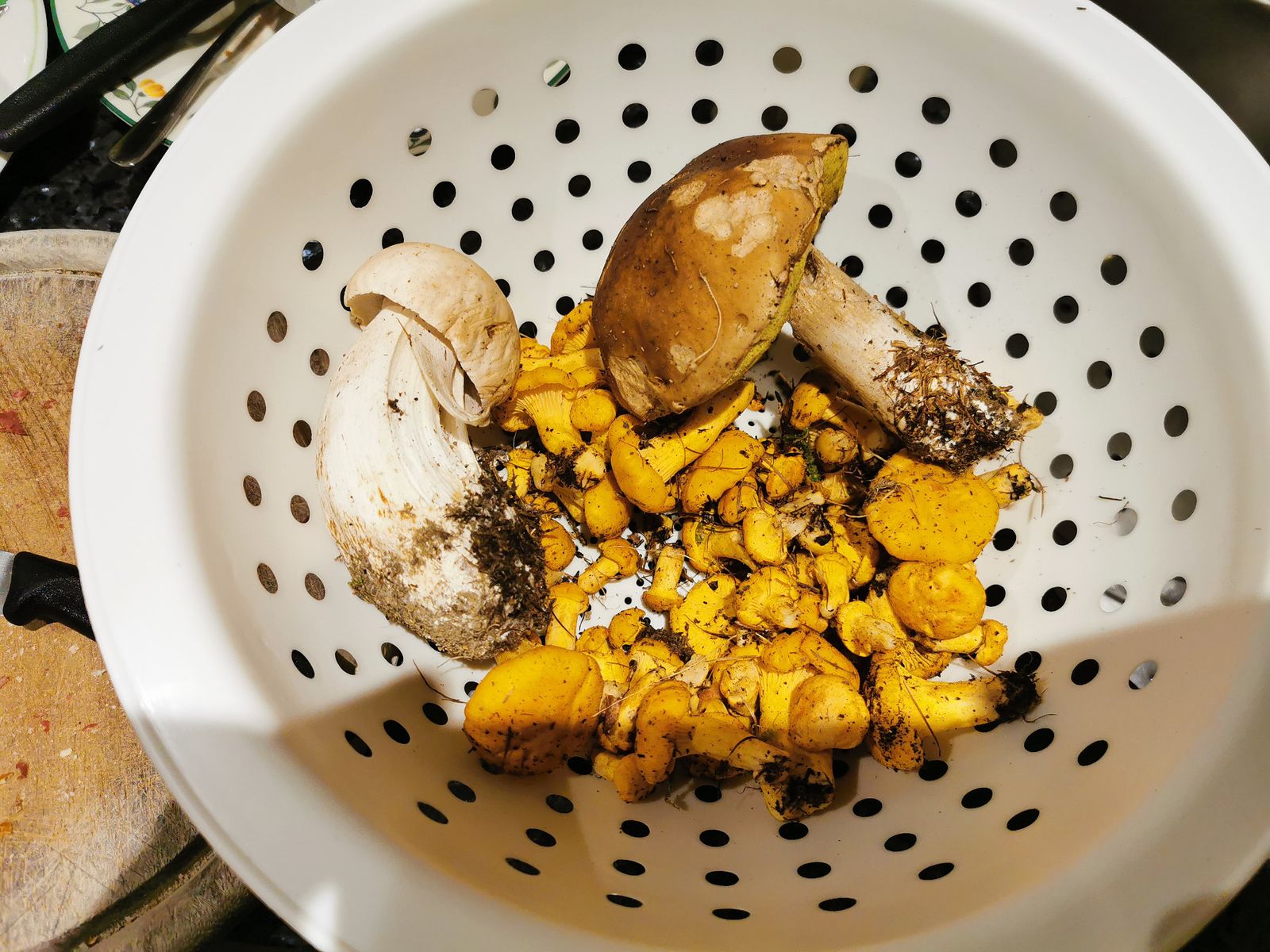 Die Hutfarbe beim Steinpilz ist ziemlich variabel und kann auch mal ganz hell ausfallen. Hier (links im Bild) zum Beispiel einer meiner Funde mit sehr heller Hutfarbe: