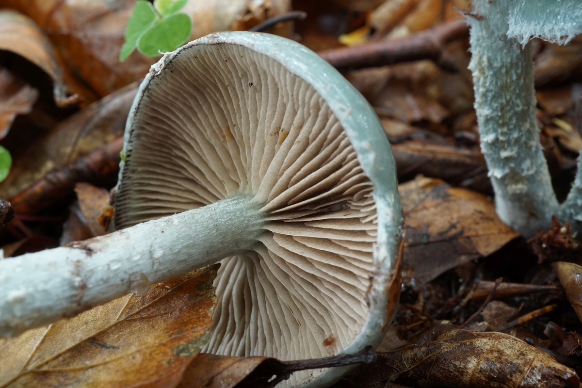Makroskopisch wäre ich somit bei Stropharia caerulea / Blauer Träuschling